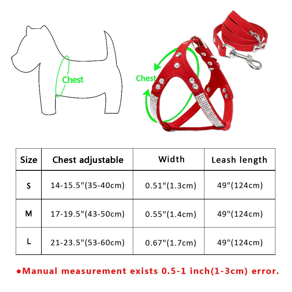 Los diamantes de imitación brillan tan bien, como los cristales de Swarovski. Tomé una talla S para mi chihuahua de 2 kg y le queda perfecto. Muchos elogios de todos, el arnés llama mucho la atención y parece cómodo para mi perro.