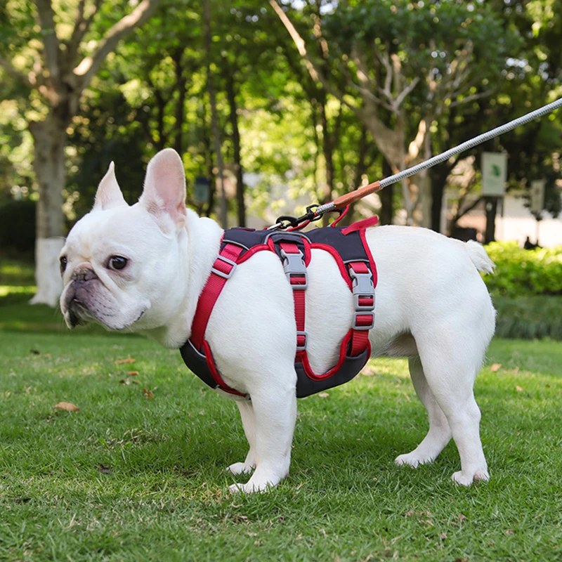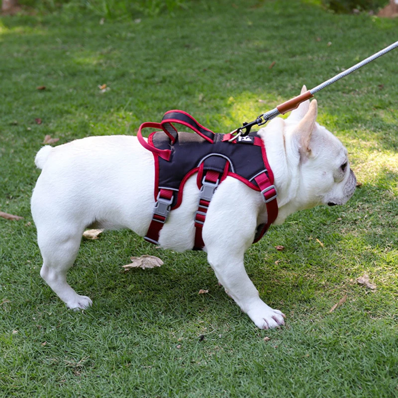 Arnés de Bulldog francés sin tirones con agarre para mascotas, suministros para caminar al aire libre para perros pequeños y medianos, arneses reflectantes fuertes para perros