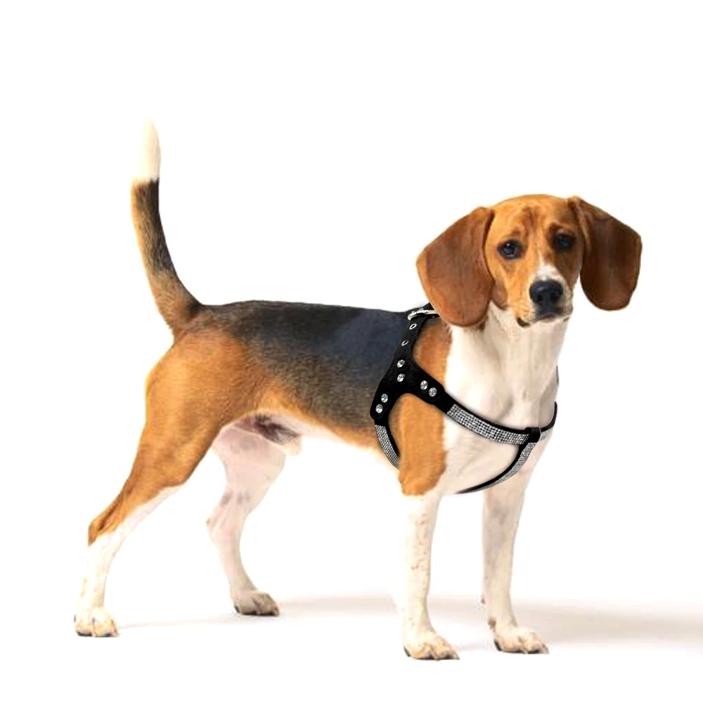 Tipo: Arnés para cachorros con diamantes de imitación, arnés para perros pequeños de cuero de ante, chaleco para perros y gatos de cristal ostentoso