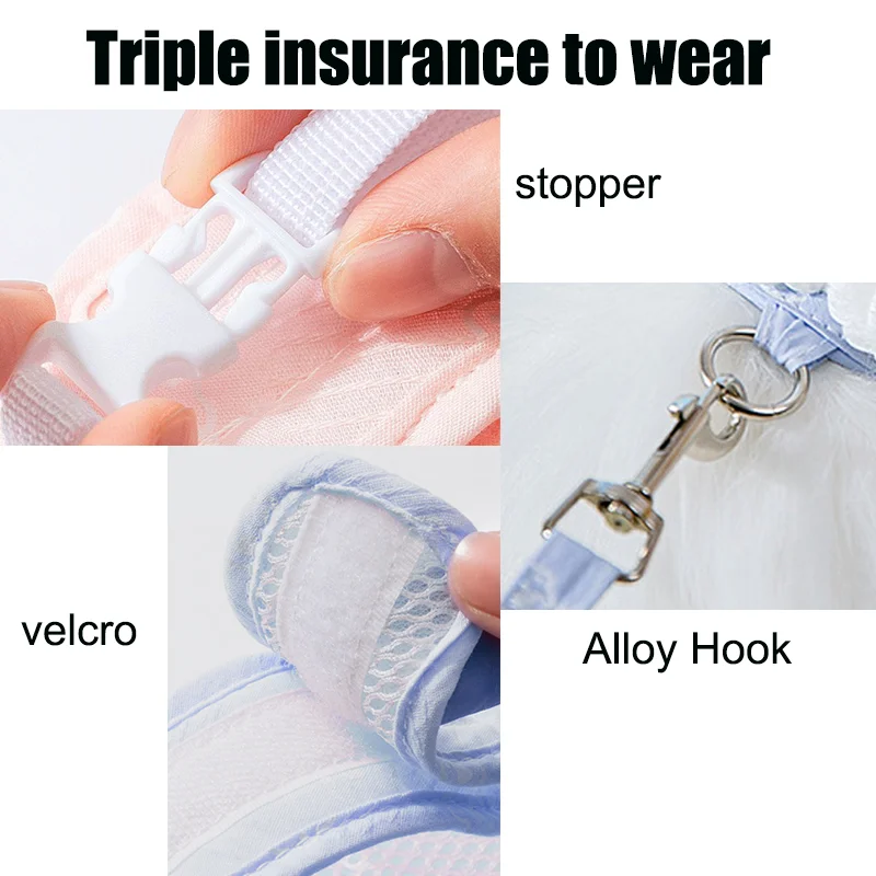 5. Triple resistencia al desgaste: el tapón, el velcro y el gancho de aleación garantizan que el arnés se mantenga seguro, evitando que su mascota se escape.