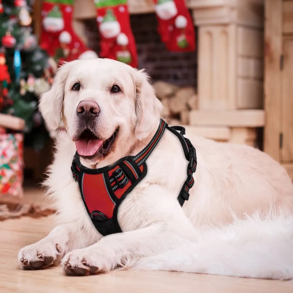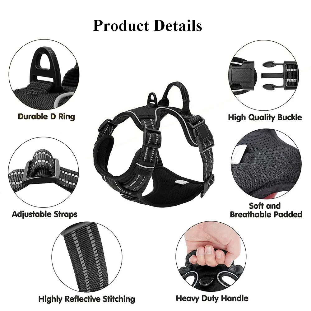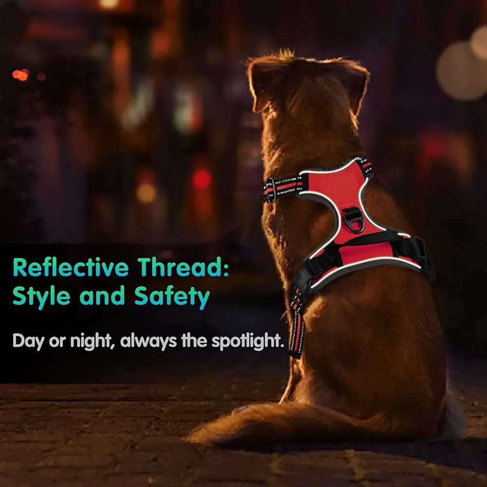 Arnés de chaleco para perro sin tirones, arnés reflectante para perro de plomo frontal sin estrangulamiento, chaleco acolchado suave ajustable para mascotas, mango de fácil Control grande