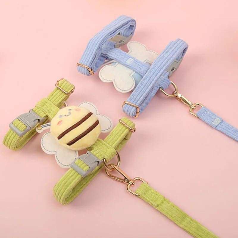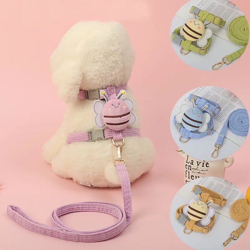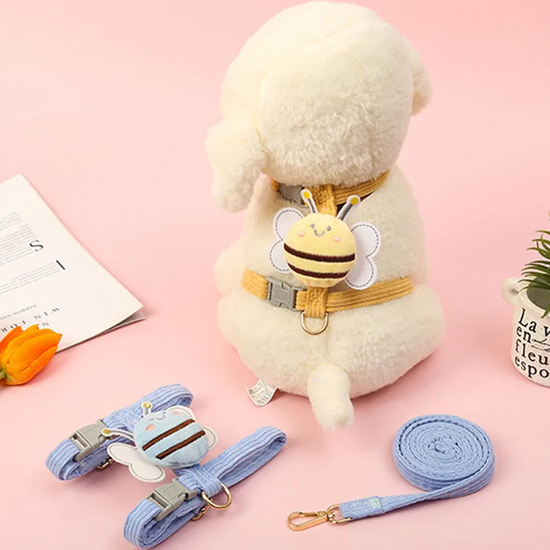 Conjunto de arnés y correa para perros con decoración de abejas, arnés de pana para perros, correa ajustable para el pecho, correa para caminar para perros pequeños, chaleco
