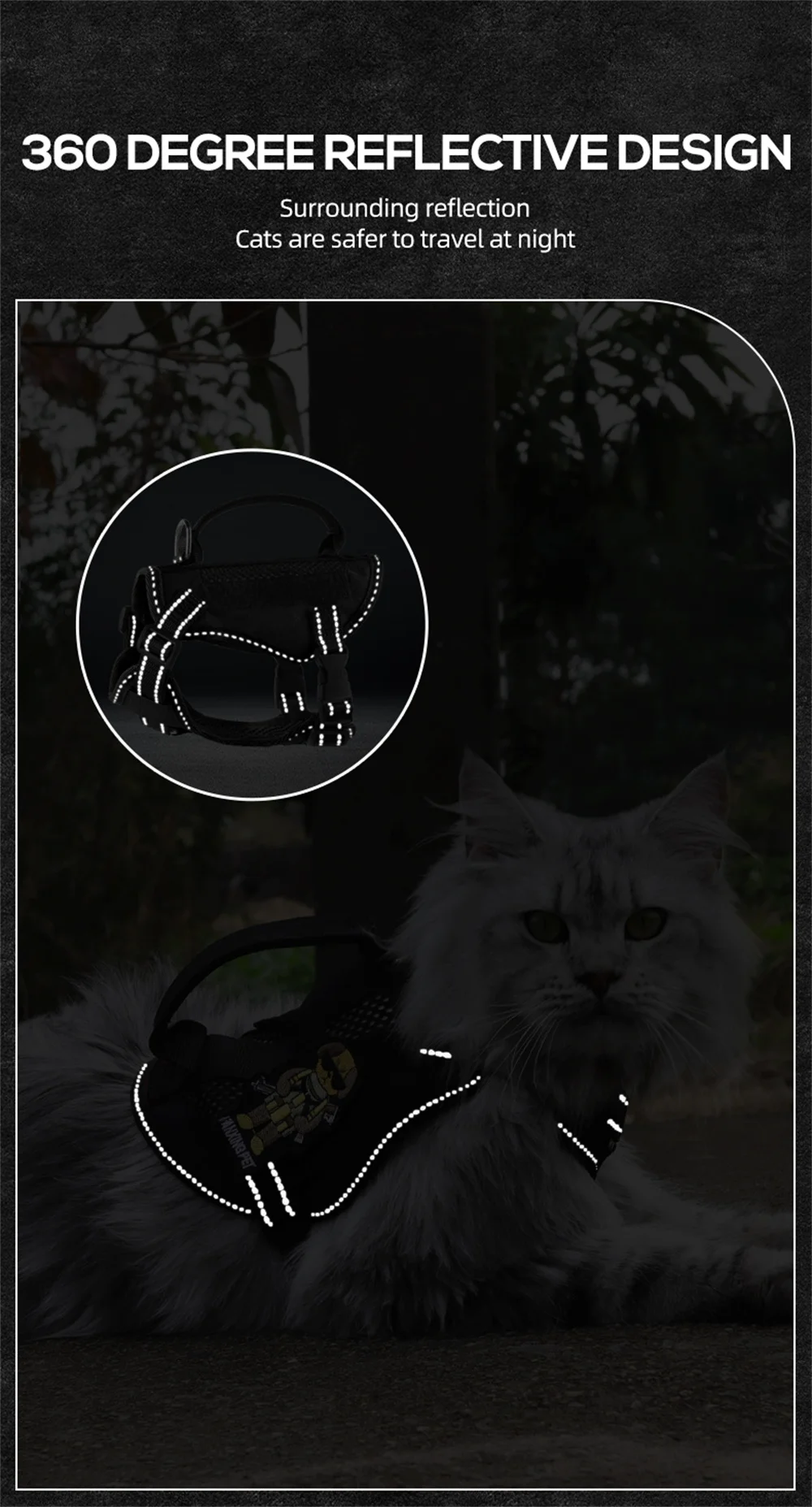 Equipado con material reflectante, que garantiza la seguridad de su mascota durante los paseos nocturnos.