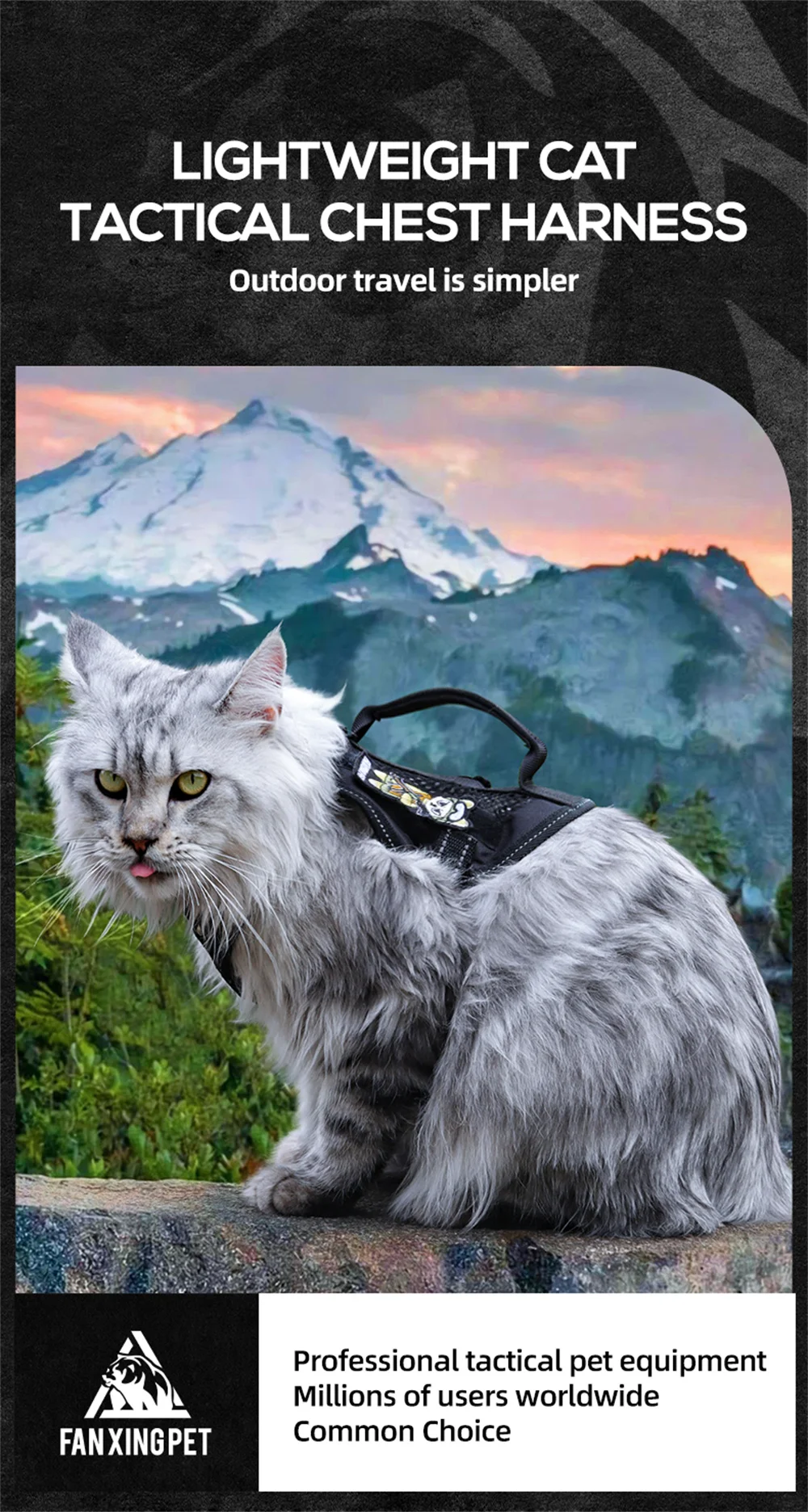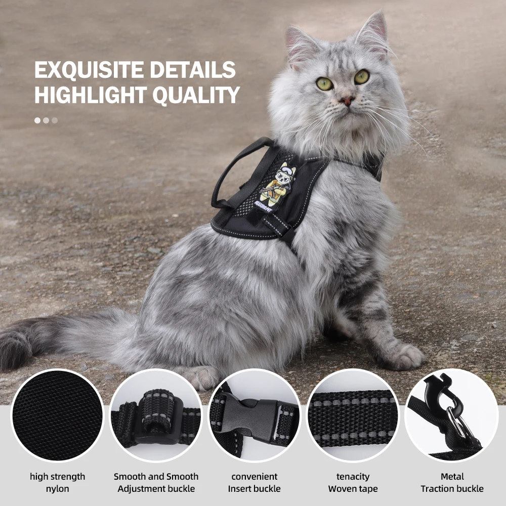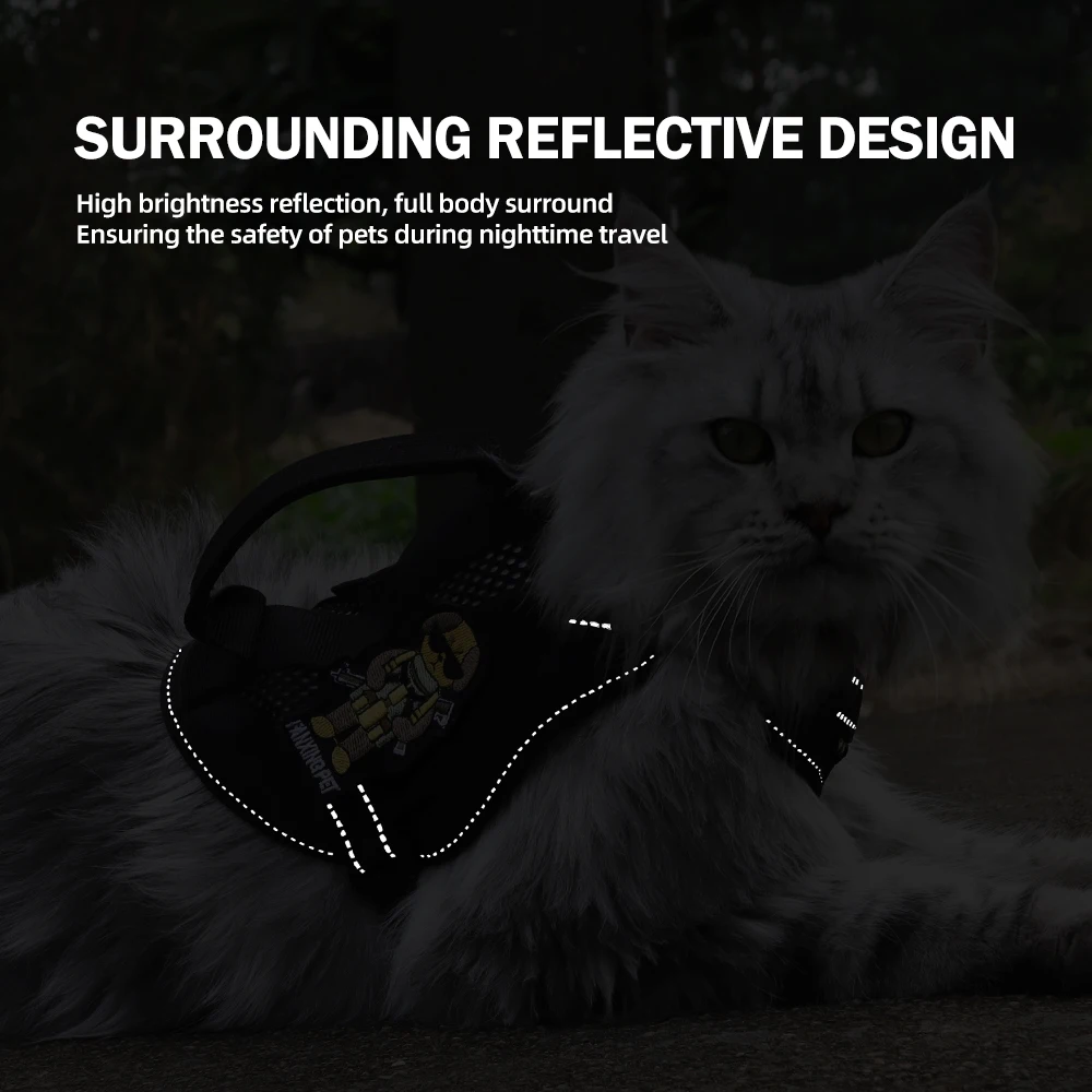 El diseño del arnés táctico proporciona comodidad y control, adecuado para mascotas activas.