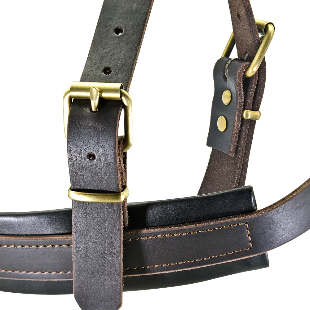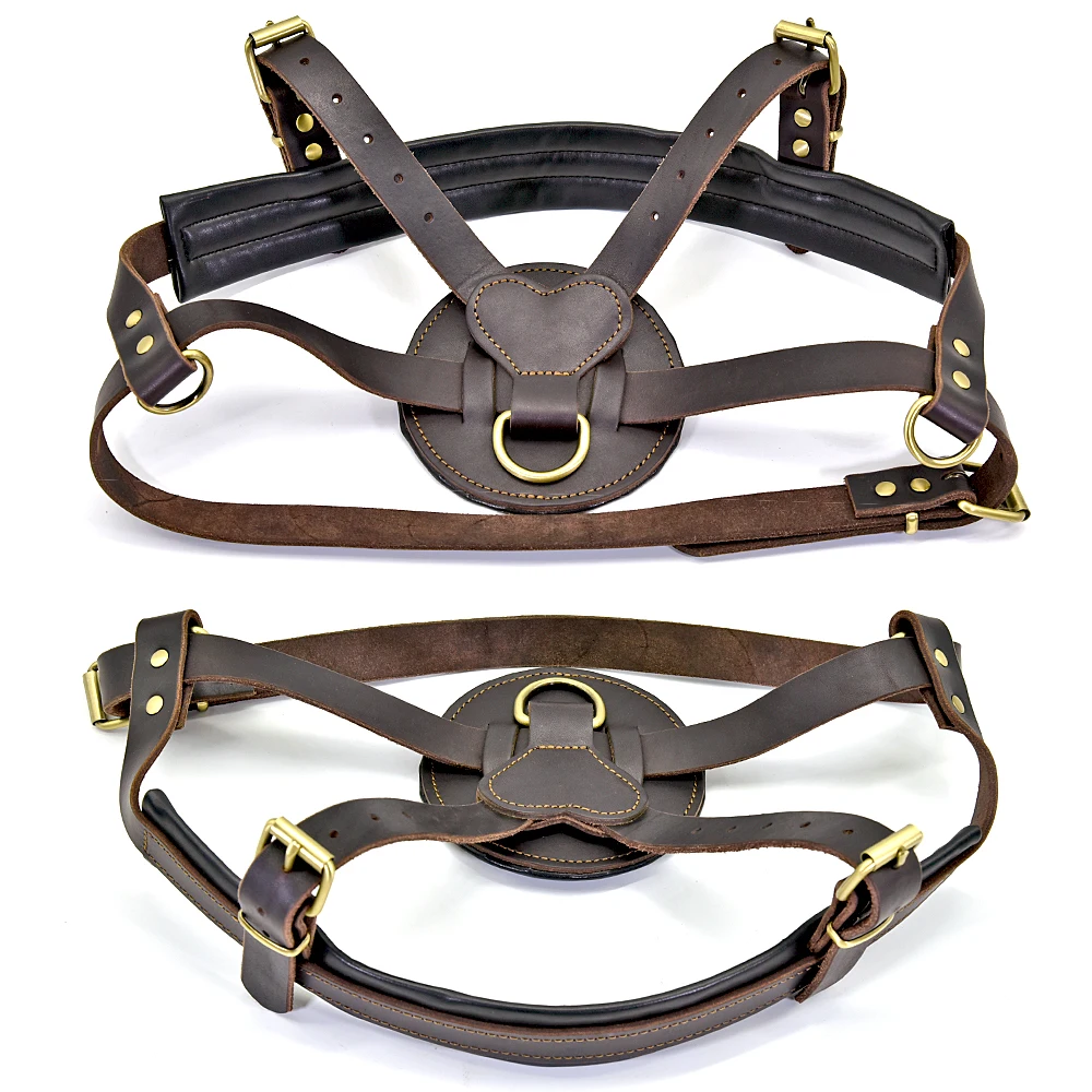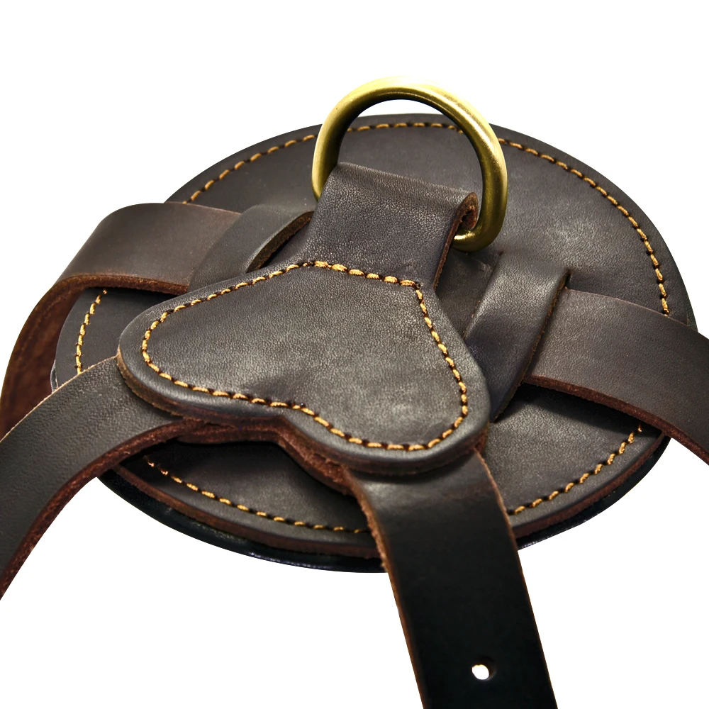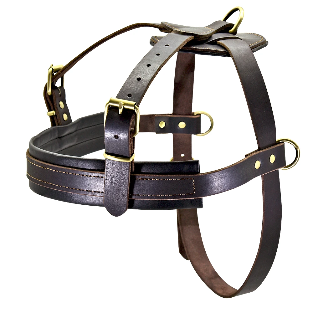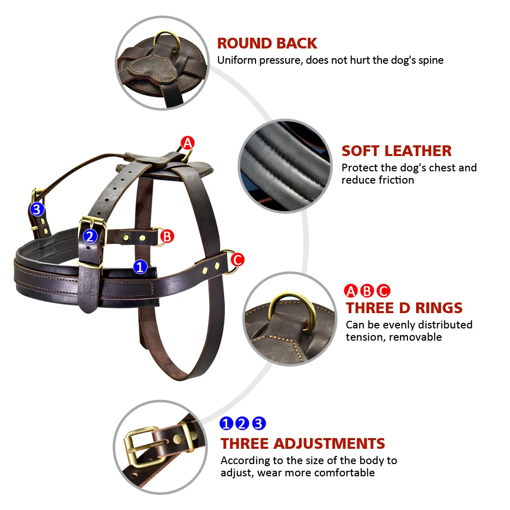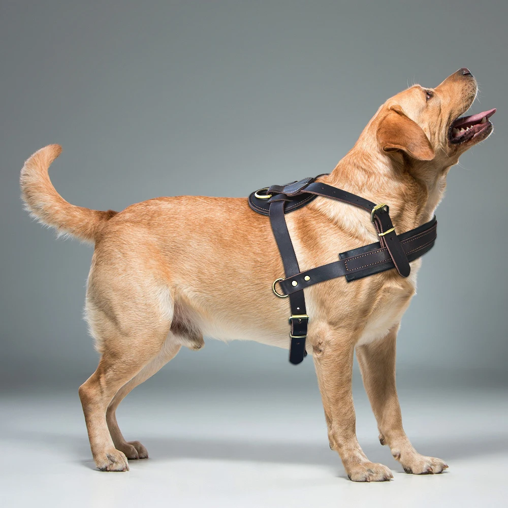 Nombre: arnés de cuero genuino para perros, arnés marrón suave para entrenamiento de caminar, pecho ajustable, perros medianos y grandes, arnés de Alaskan Pitbull