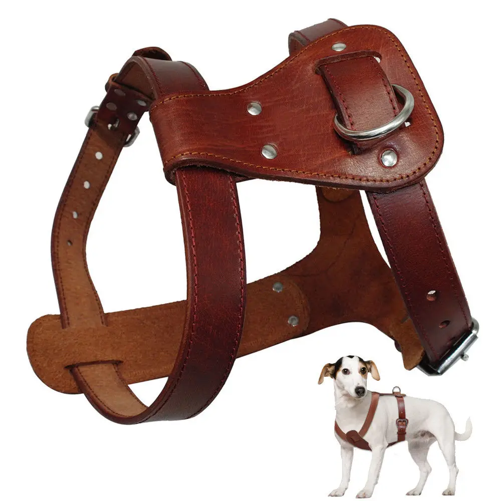 Arnés de cuero genuino para perros, chaleco de entrenamiento para caminar, correas ajustables, Boxer, marrón, mediano y grande, Pitbull, Mastiff