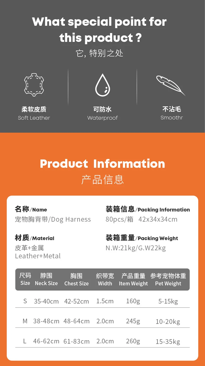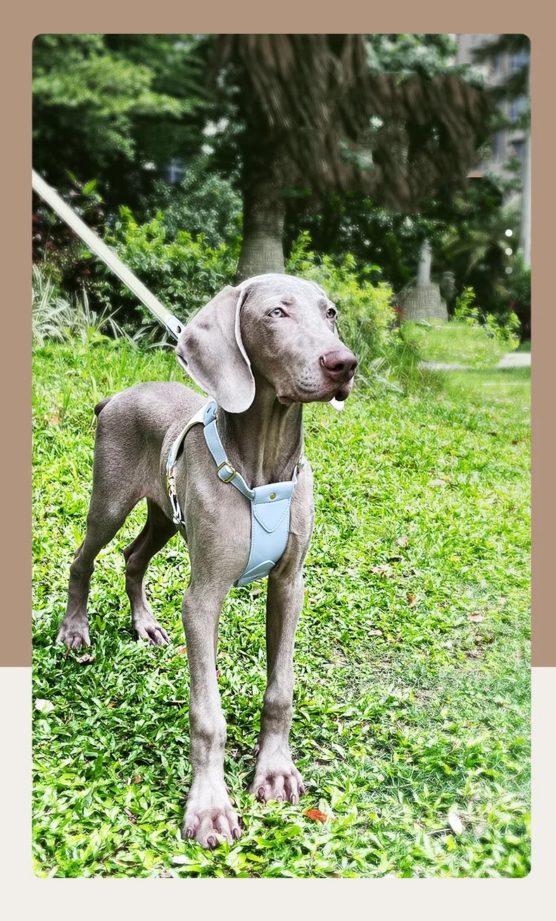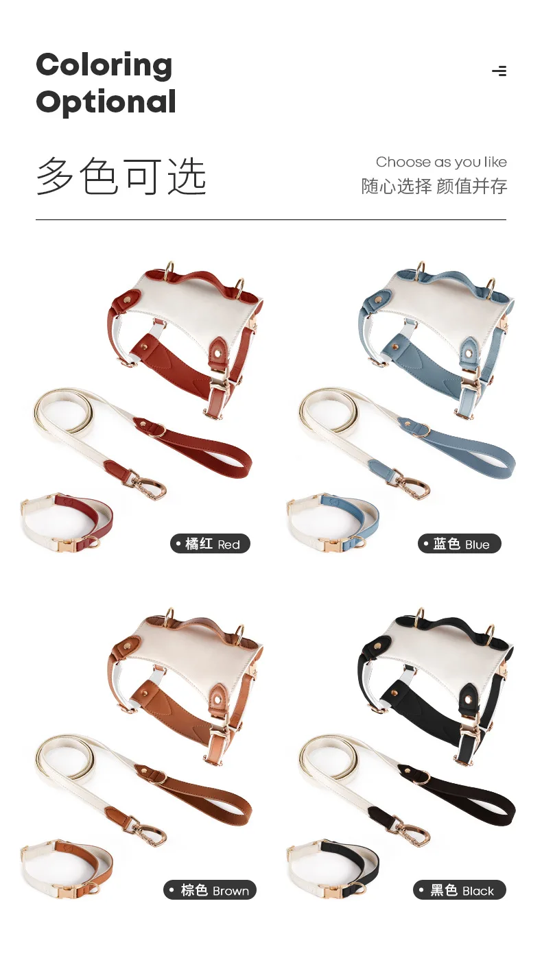 Arnés de cuero de lujo para perro, conjunto de correa de collar para mascotas, impermeable, suave y ligero, sin tirones, en forma de H, cuerda de tracción para exteriores