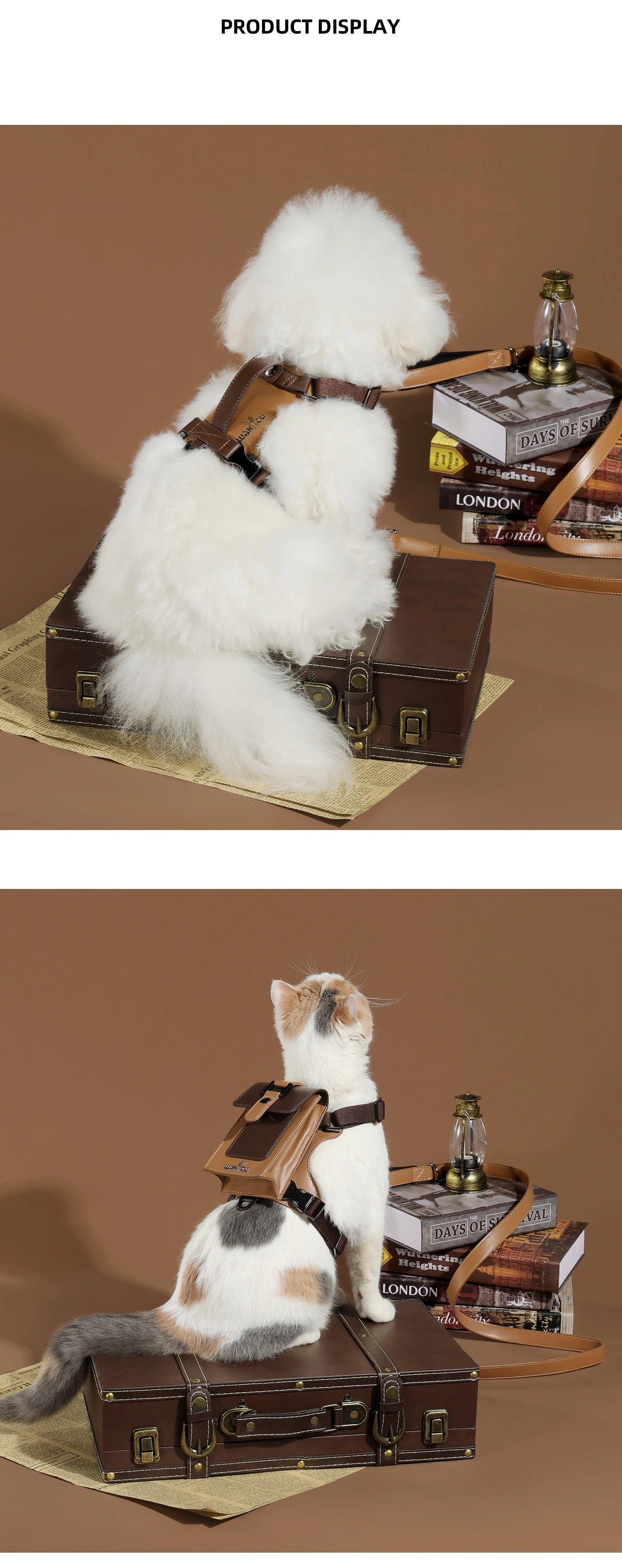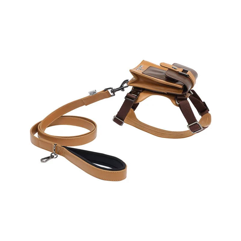 Arnés de cuero para mascotas con correa para perros pequeños a medianos Arnés de chaleco para perros suave y liviano con mochila Arnés ajustable para perros