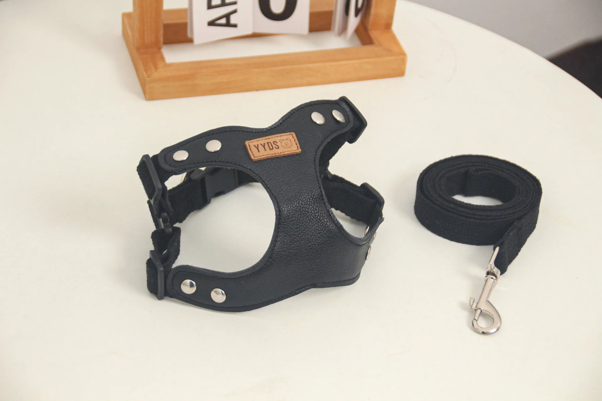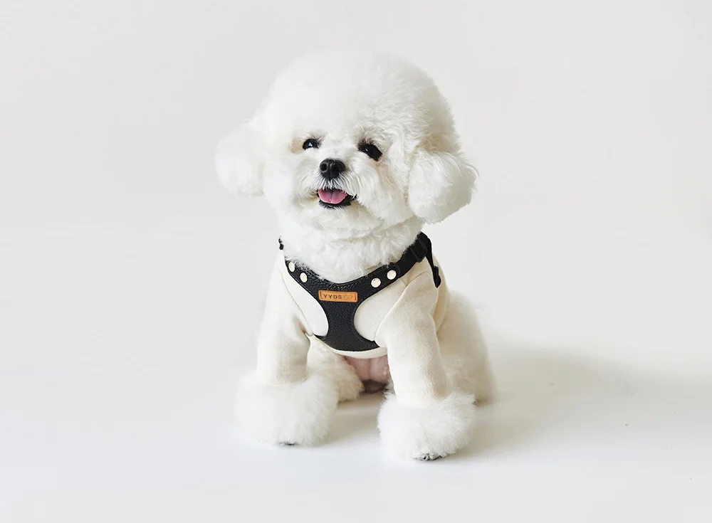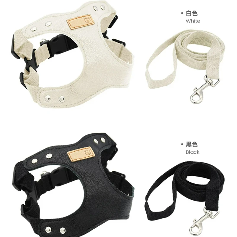 Arnés de cuero Pu para perro, conjunto de chaleco y correa, arnés de pecho ajustable, correa para caminar para perros al aire libre, Bichon Schnauzer para perros pequeños