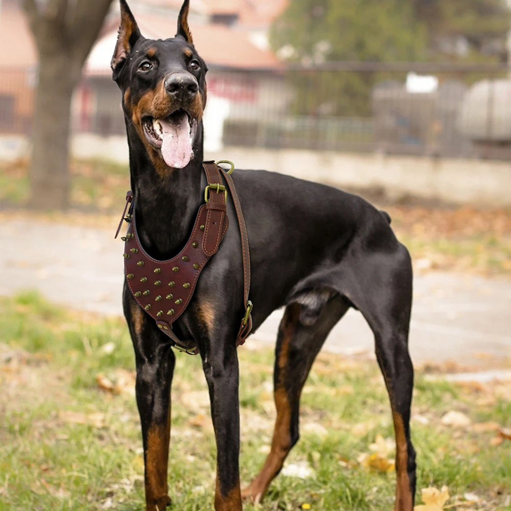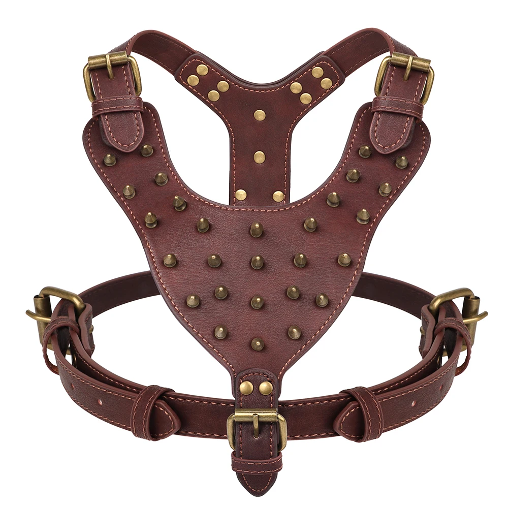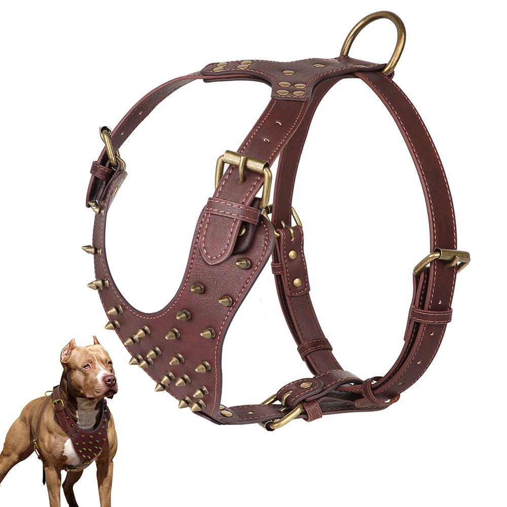 Arnés de cuero PU para perros grandes, arneses para perros con tachuelas y pinchos, chaleco de entrenamiento para mascotas Pitbull Labrador, duradero para perros medianos y grandes