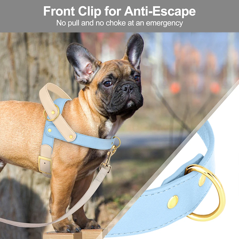 Arnés de cuero para perros sin tirones, arnés para perros pequeños, medianos y grandes, chaleco acolchado suave para mascotas Pitbull, duradero, ajustable para perros Pug Pitbull