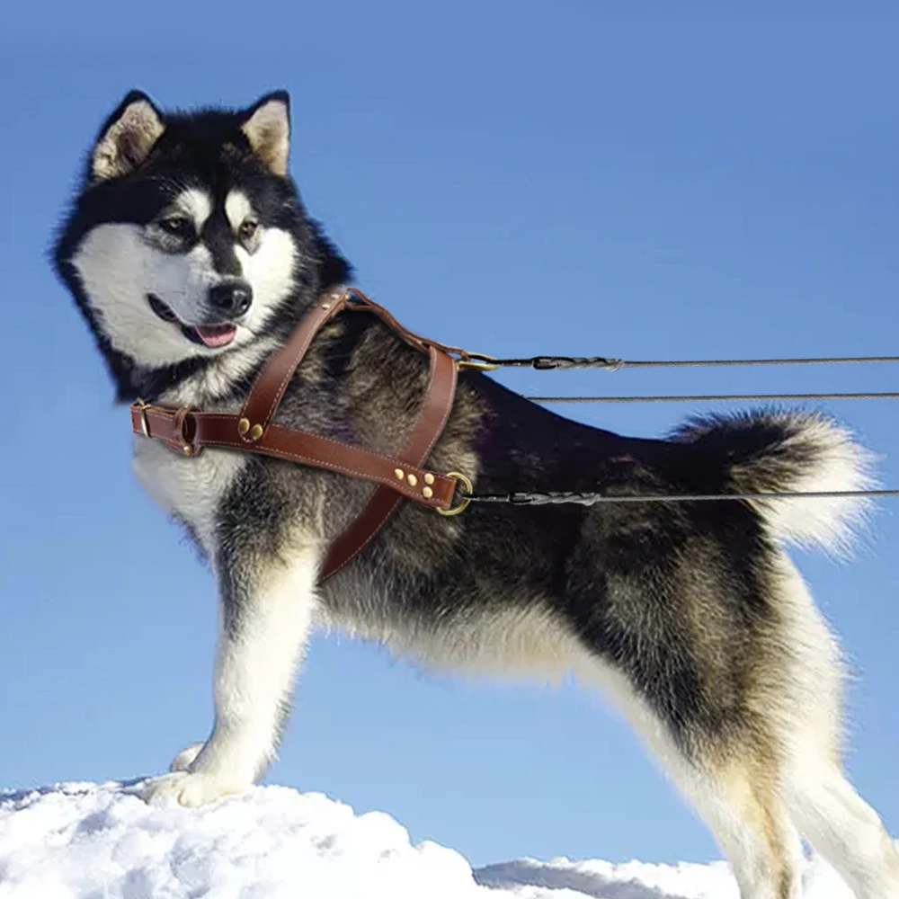 Nombre: Arnés de cuero suave para perros, arnés de cuero genuino marrón para perros medianos y grandes, ajustable para Pitbull Alaskan Walking Training