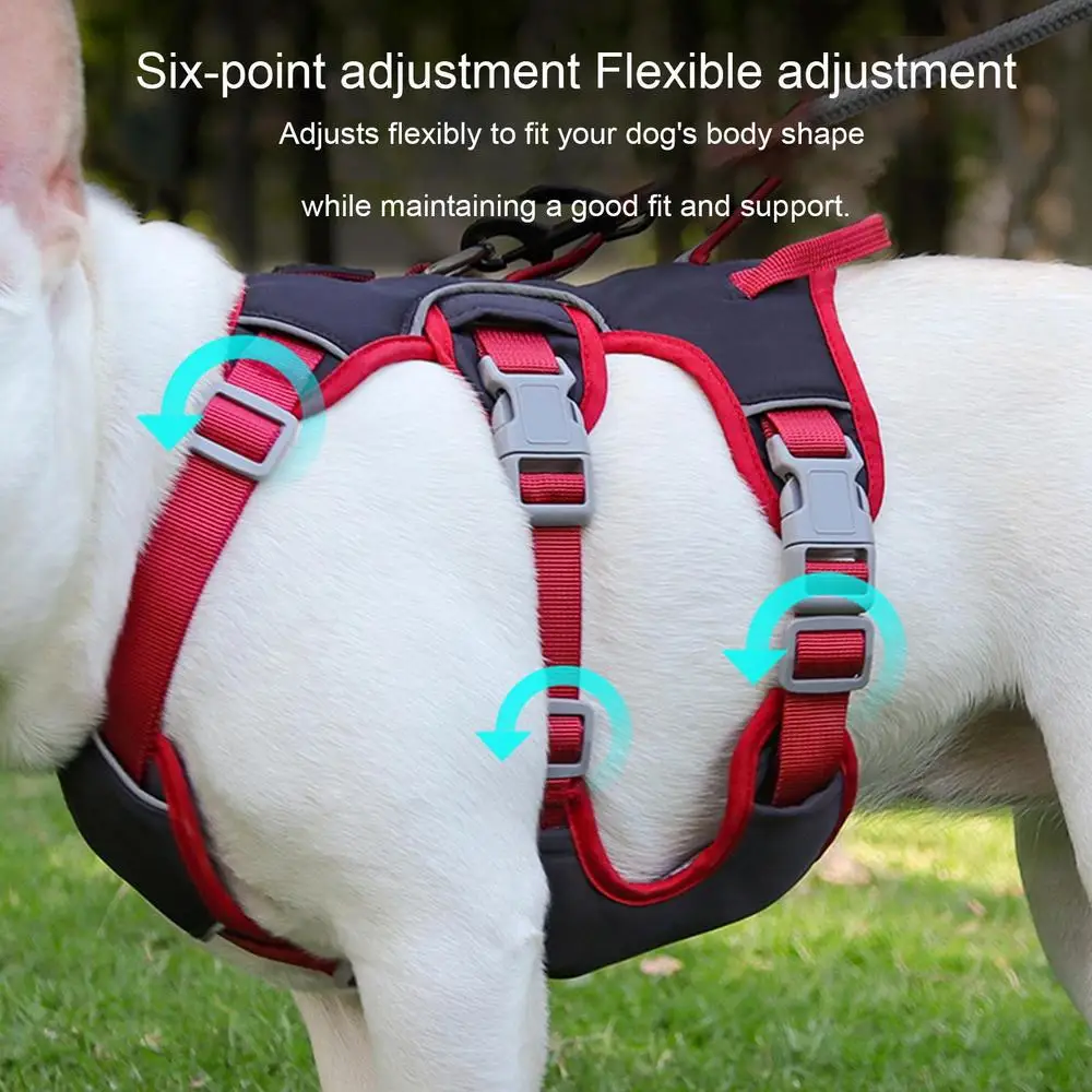 2. Se puede ajustar: Este arnés para mascotas cuenta con correas que se pueden ajustar al tamaño del cuello y el pecho de los perros. Garantiza la seguridad y la comodidad del perro al evitar asfixia y resbalones.