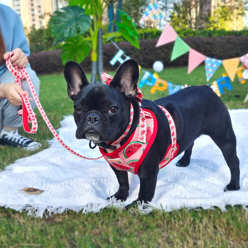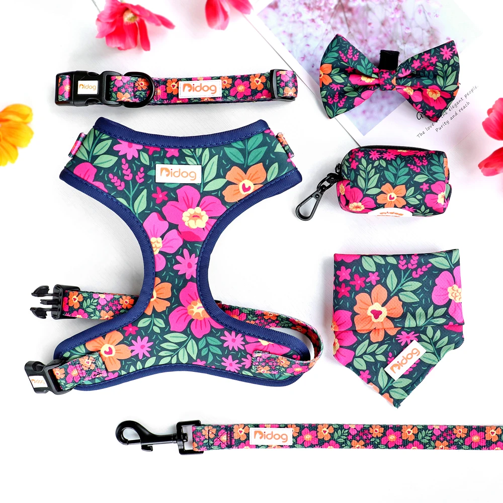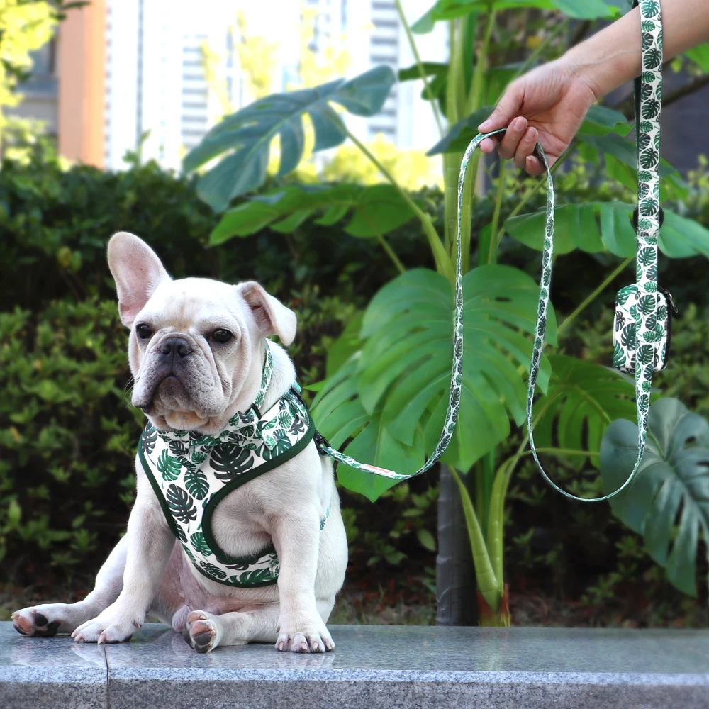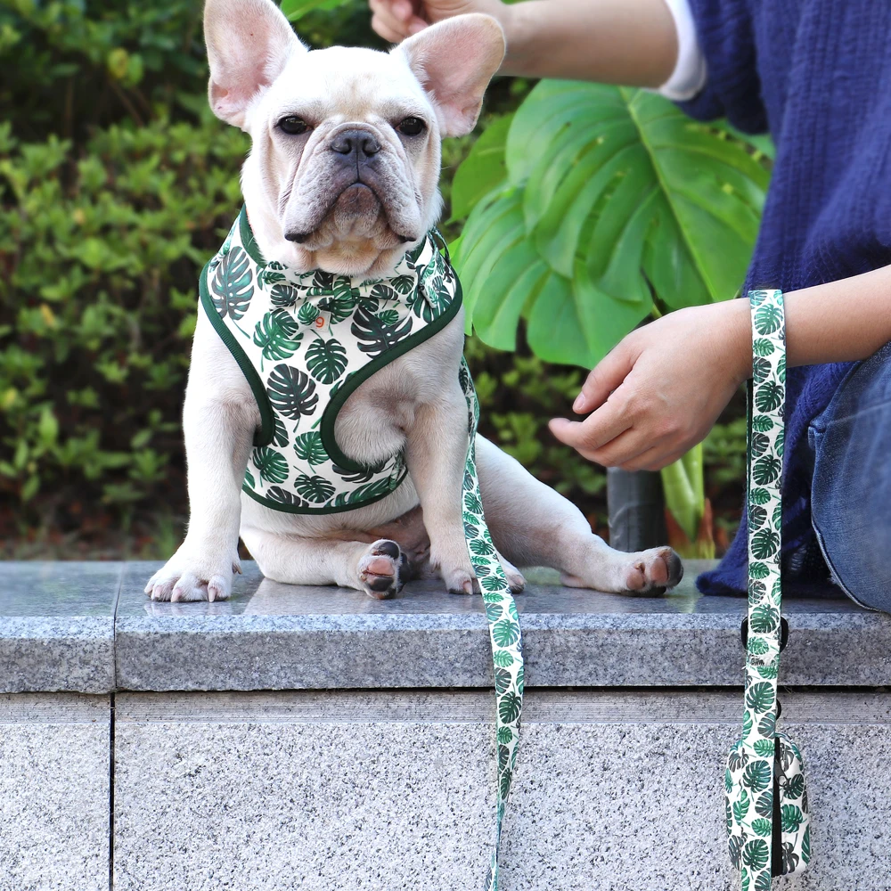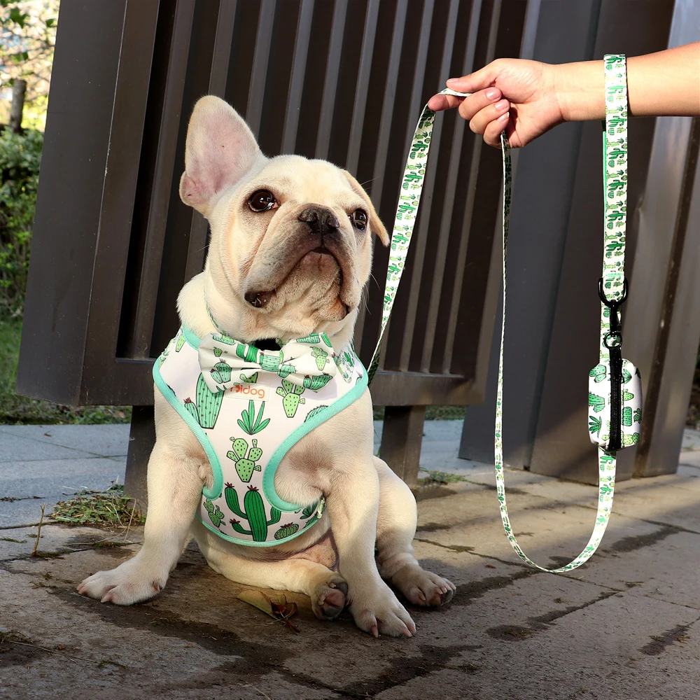 Arnés con estampado de moda para perro, correa a juego, bolsa para caca, Bandana para perros pequeños y medianos, Bulldog francés, regalo para mascotas, 6 unidades por lote
