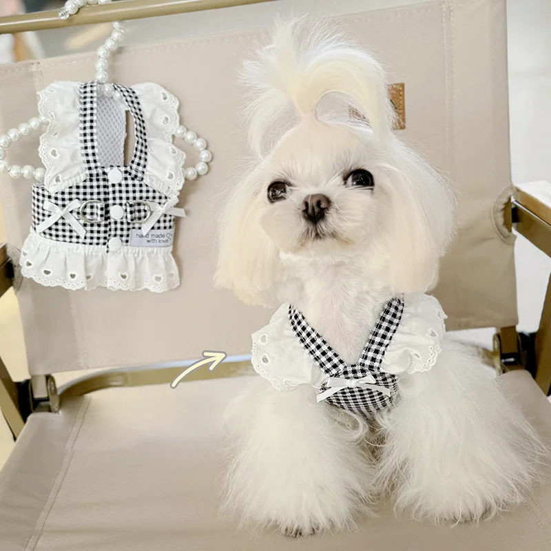 Arnés de estilo Pastoral para mascotas, ropa de cachorro a cuadros negros, arnés Universal para perros y gatos, vestido de princesa Retro rastreable, moda de encaje