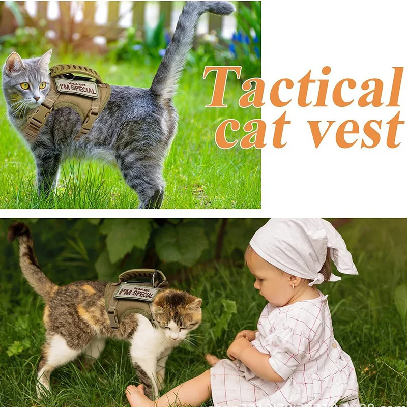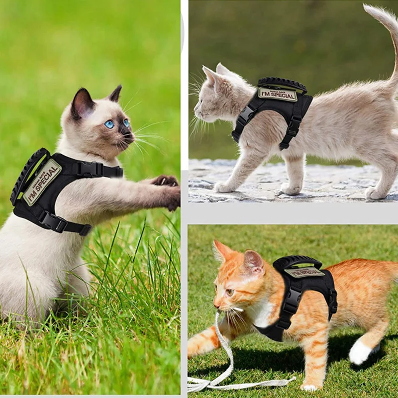 Diseño de mango de goma para agarrar al gato directamente en situaciones difíciles. Fuerte anillo de metal en la parte posterior para sujetar la correa del gato. El diseño estilo chaleco puede distribuir uniformemente la presión de la correa sobre el pecho y los hombros para evitar asfixia o tensión en el cuello, lo que ofrece mucha más comodidad y seguridad que un arnés básico tipo halter o estilo H.