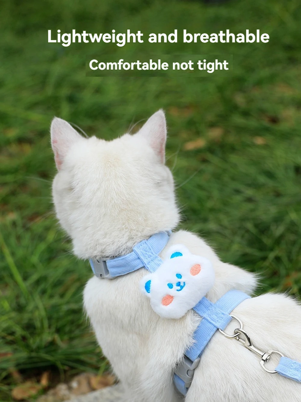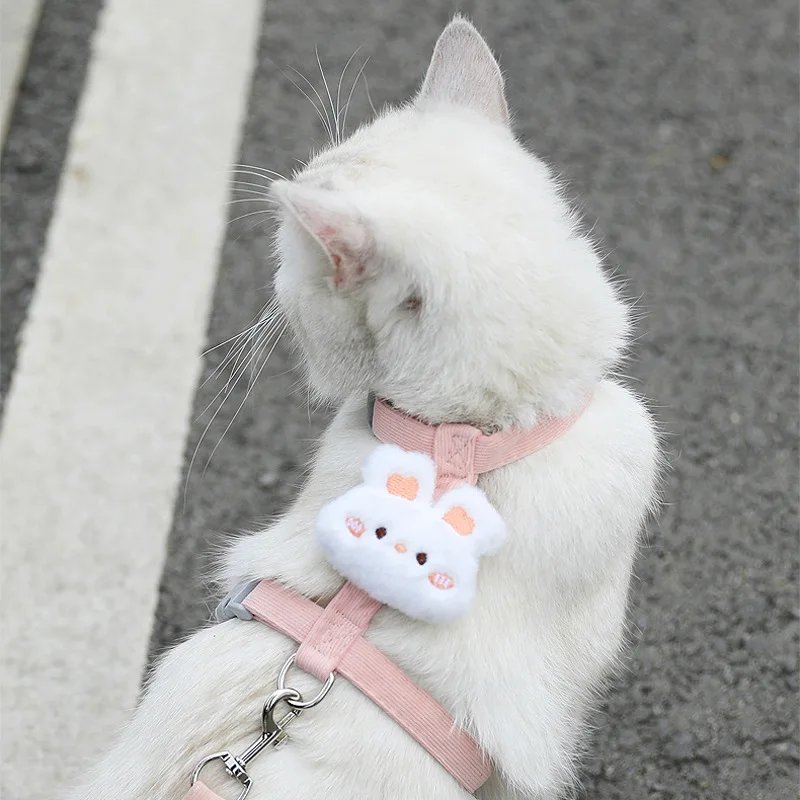 Arnés transpirable y bonito para gatos pequeños, conjunto de arnés y correa ajustable con patrón de conejo para caminar al aire libre