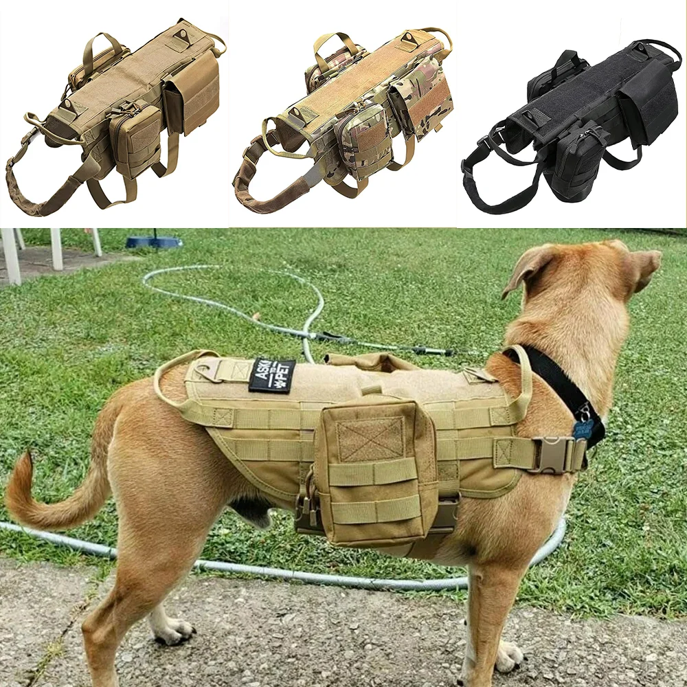 Arnés grande para perros con 3 uds., bolsas tácticas para perros, pastor alemán Malinois, chaleco de entrenamiento para caminar, bolsa Molle para perros