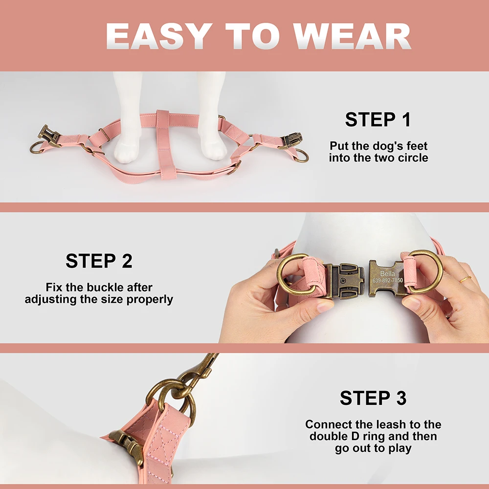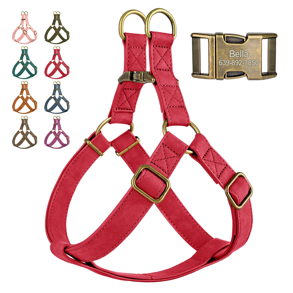 Arnés personalizado para perros, chaleco duradero de cuero PU para perros, Arneses con hebilla con nombre de identificación de mascotas grabados gratis para perros pequeños y medianos y grandes Pug