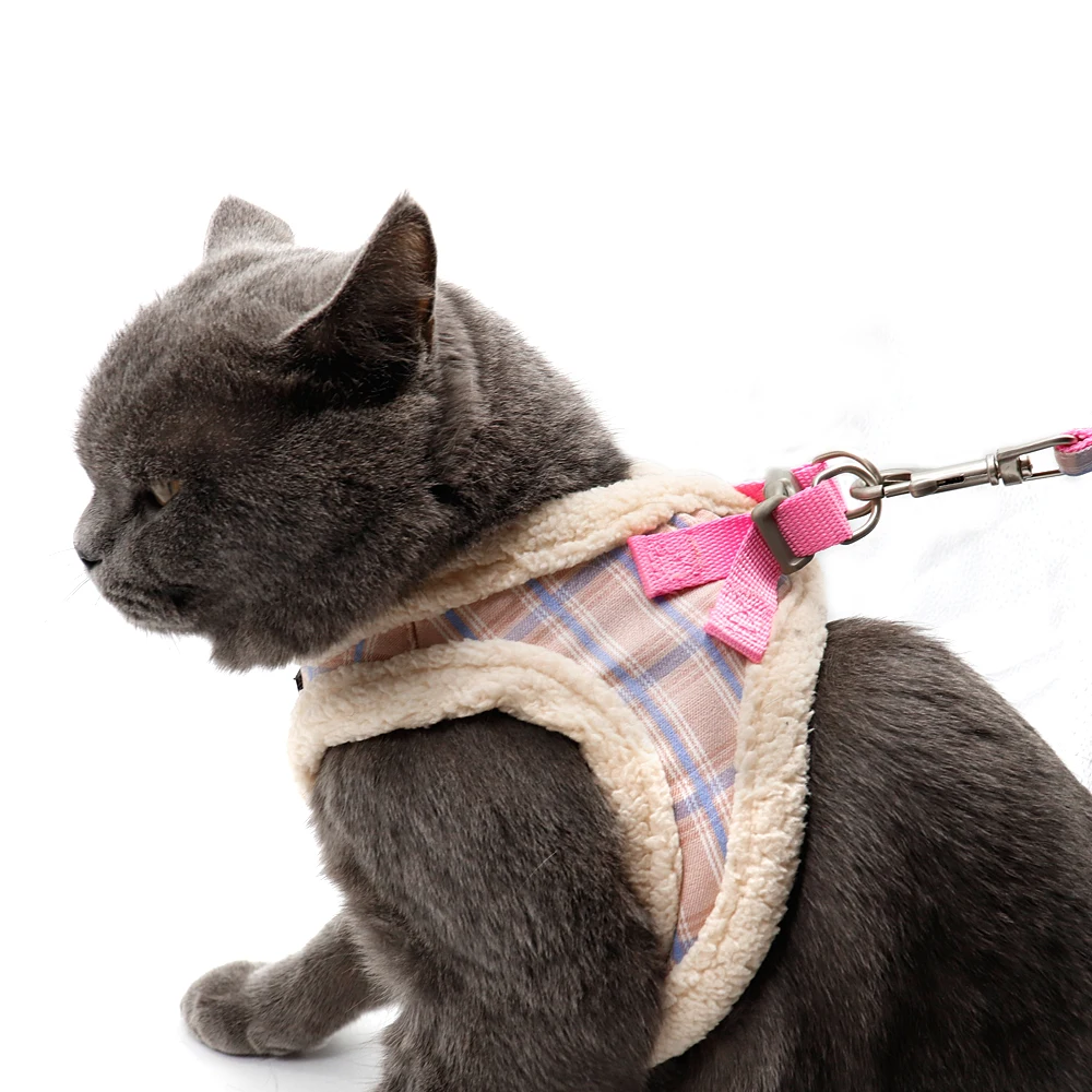 Nombre: Arnés de invierno para perros pequeños, chaleco y Correa, conjunto de algodón, cómodo, suave, arnés para perros cachorros y correas, arnés para mascotas y gatos para perros pequeños