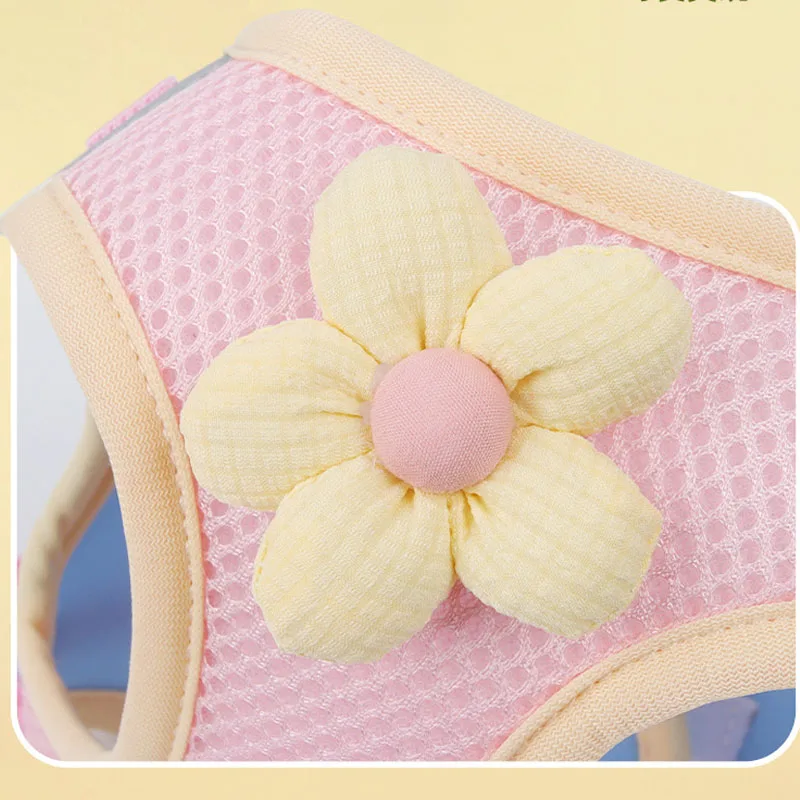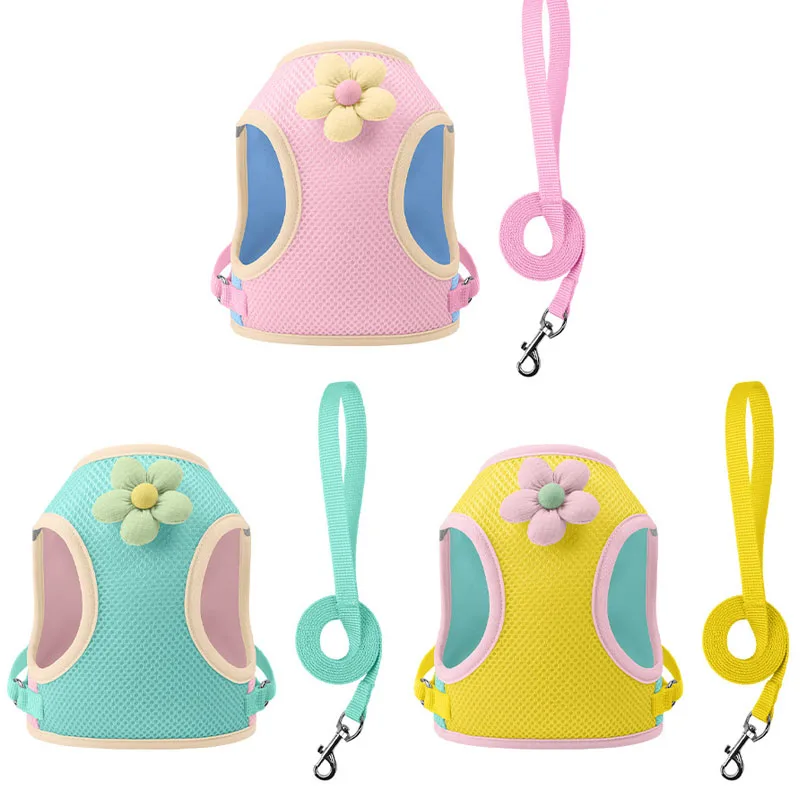 Arnés para perros con correa, chaleco de malla con patrón de flores, arnés para perros pequeños y medianos, accesorio para mascotas, correa de nailon para cachorros y gatos