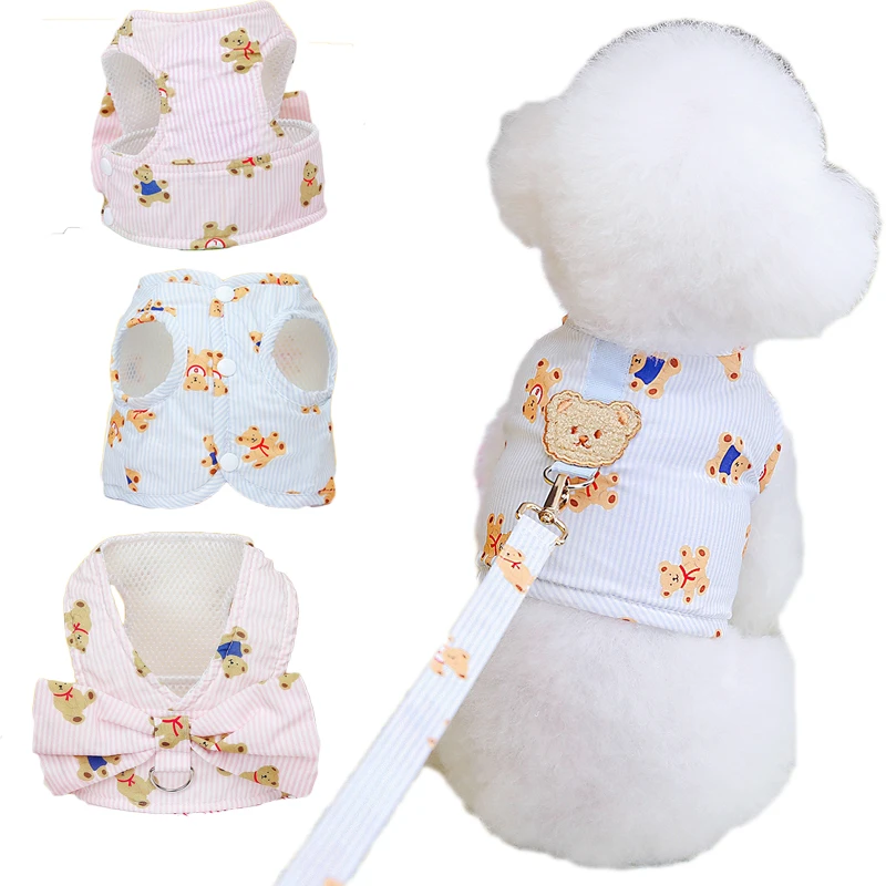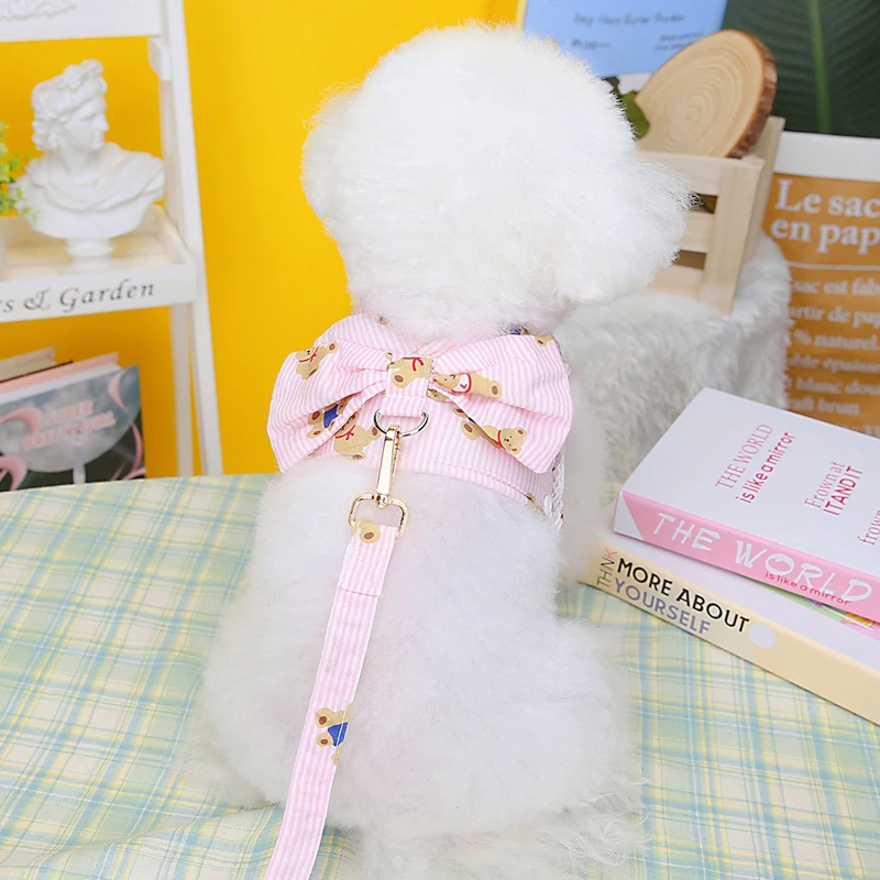 Chaleco con pajarita para perros y niñas, accesorios para mascotas, arnés para gatitos y cachorros con correa, conjunto para perros pequeños, chaleco para perros Chiwawawa