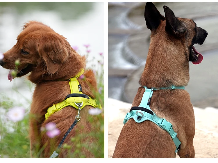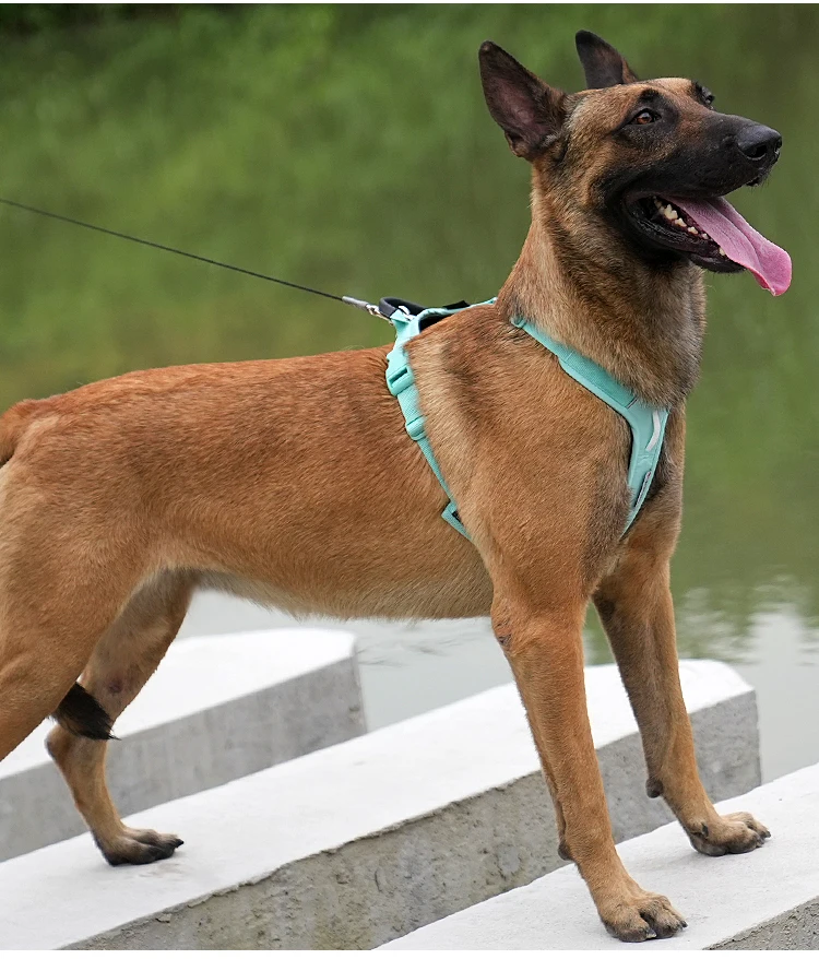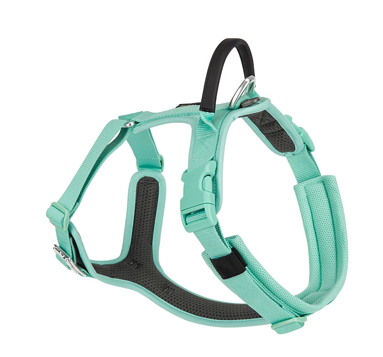 La calidad del arnés es excelente, todos los mecanismos y sujetadores son muy robustos y fiables. El perro está contento. El paquete llegó rápidamente.
