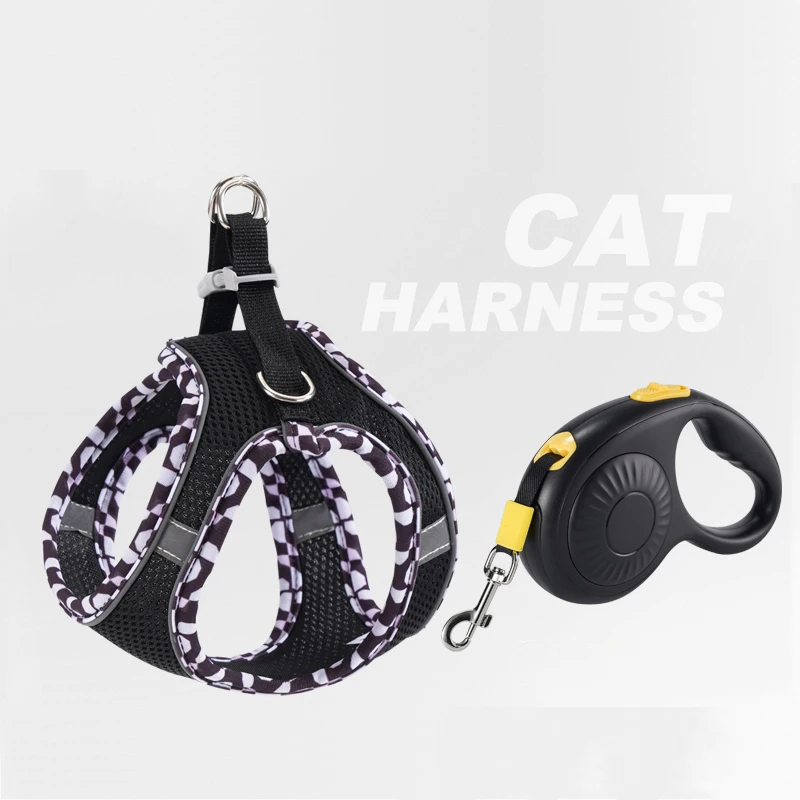 Arnés para mascotas con correa retráctil para perros y gatos pequeños, conjunto de arnés para mascotas con chaleco acolchado reflectante, enredo de bloqueo automático