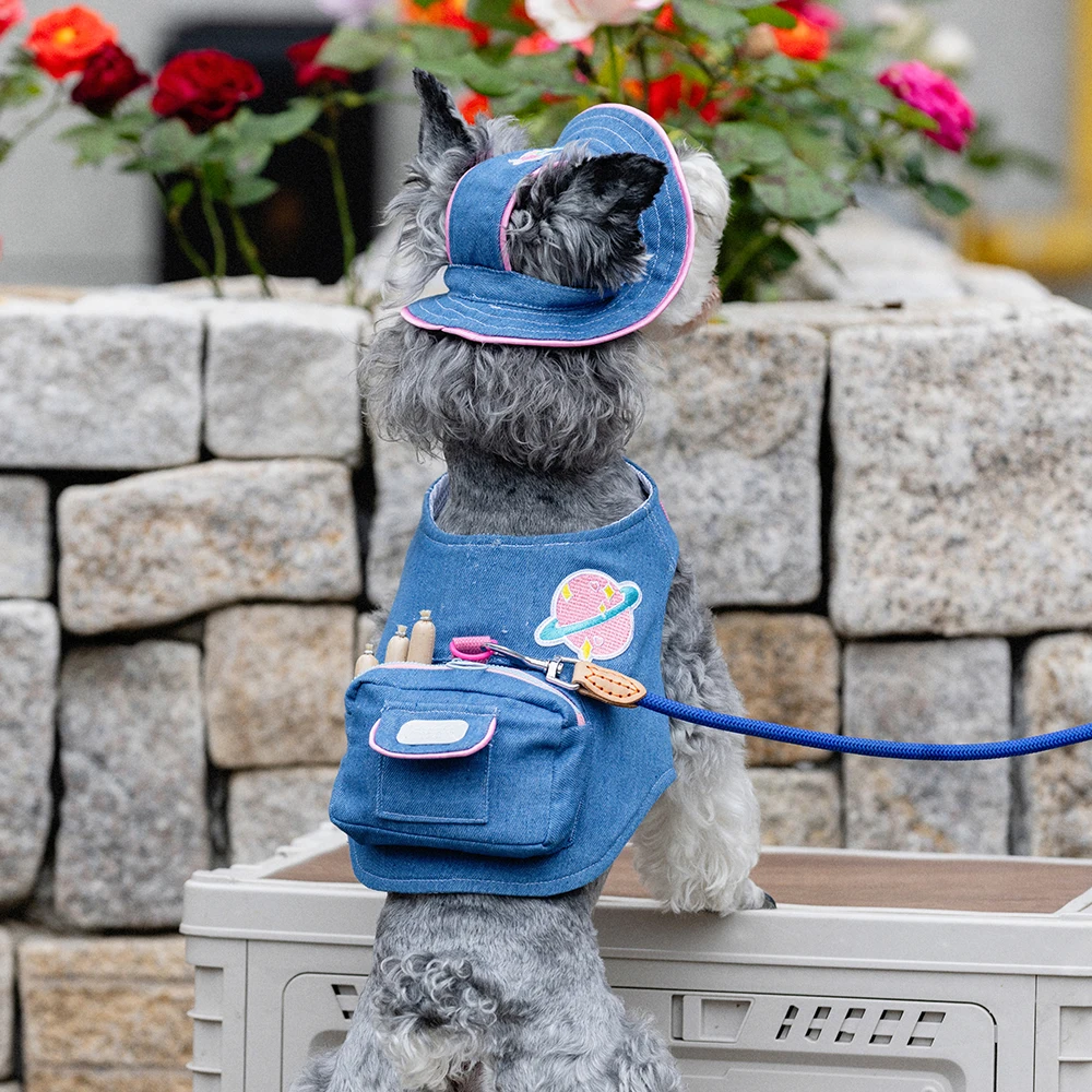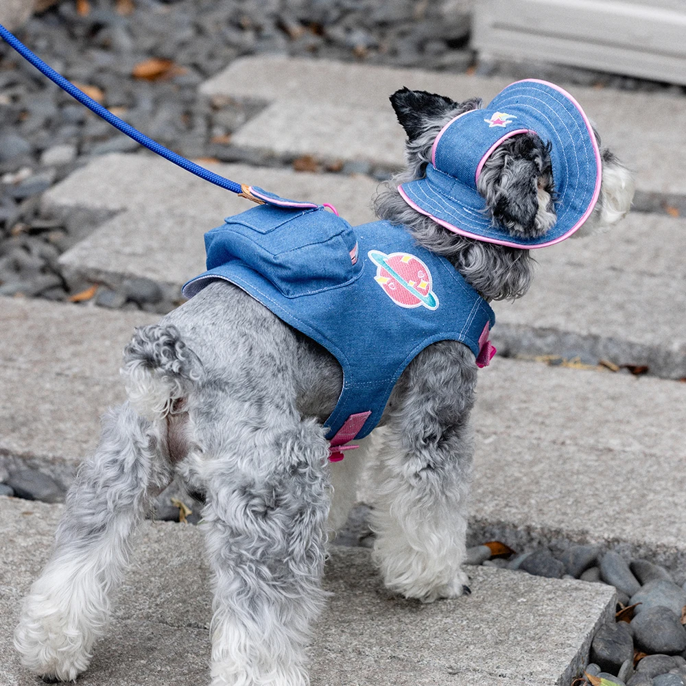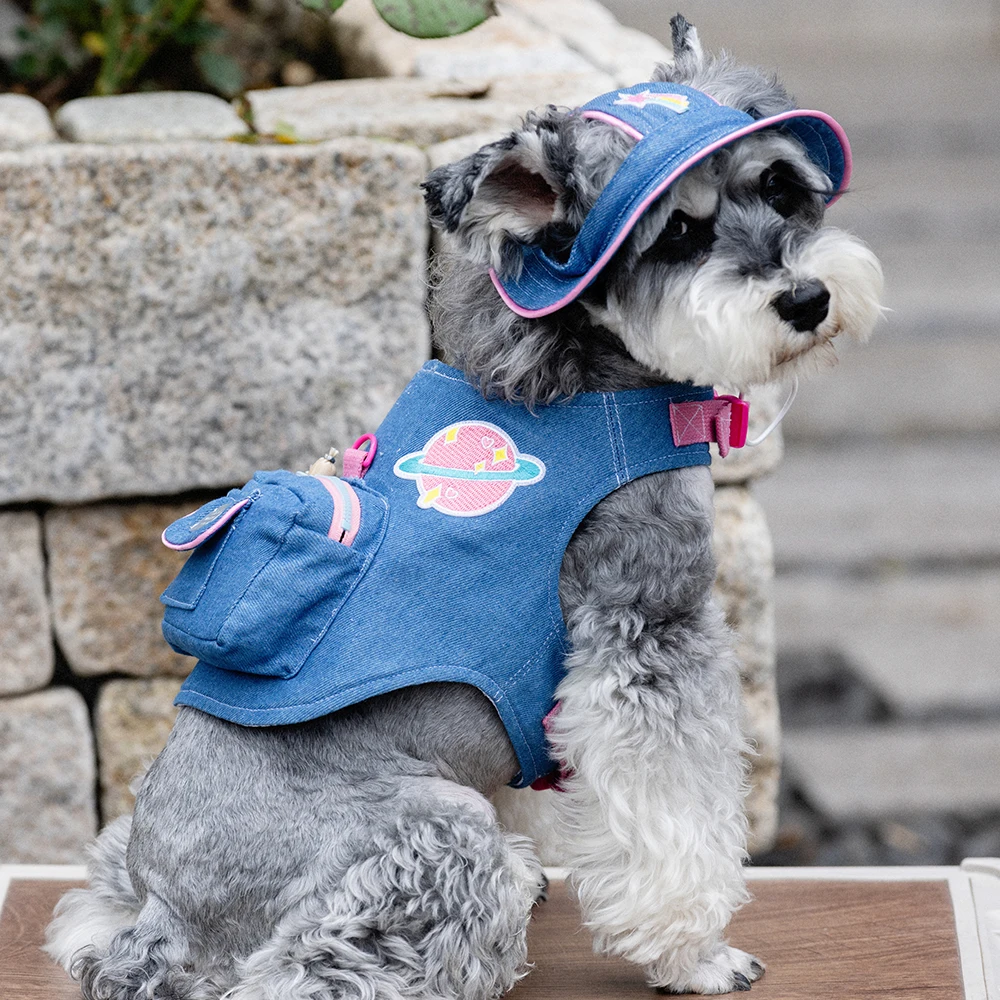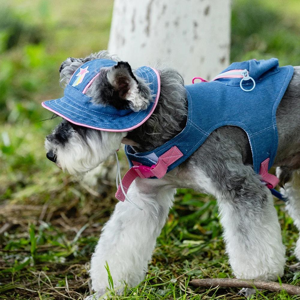 Arnés para mascotas para perros pequeños, correas de mezclilla para primavera y verano para Schnauzer, arnés ajustable de peluche Pomeranian, adecuado para viajes y paseos para mascotas