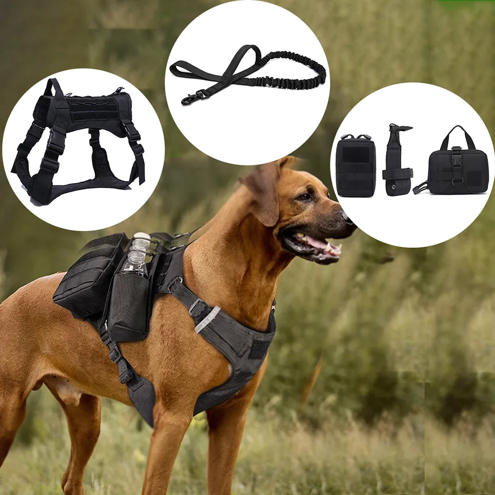 Arnés militar para perros grandes, pastor alemán K9, chaleco de entrenamiento Malinois, conjunto de arnés y correa para perros tácticos