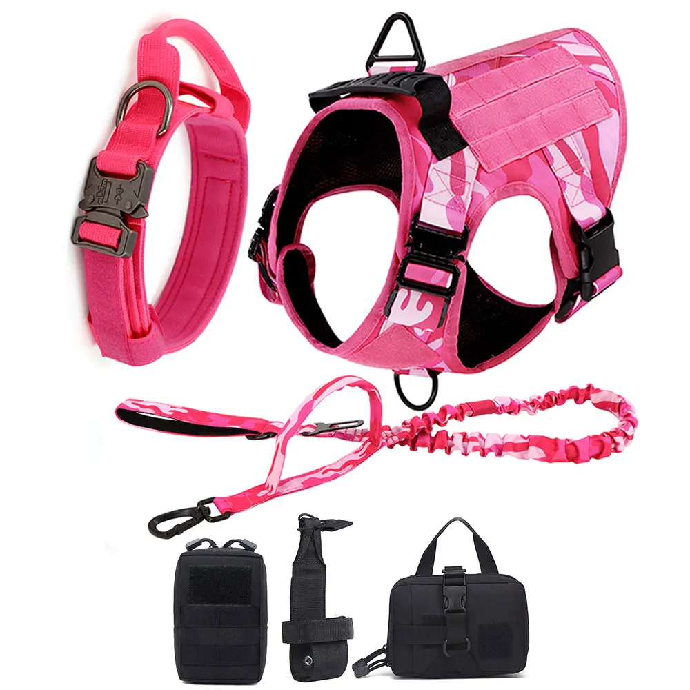 Sistema Molle equipado en ambos lados para bolsas, botellas de agua y equipo táctico para perros. Múltiples paneles de gancho y bucle para parches de moral e insignias para mostrar la personalidad de su perro.