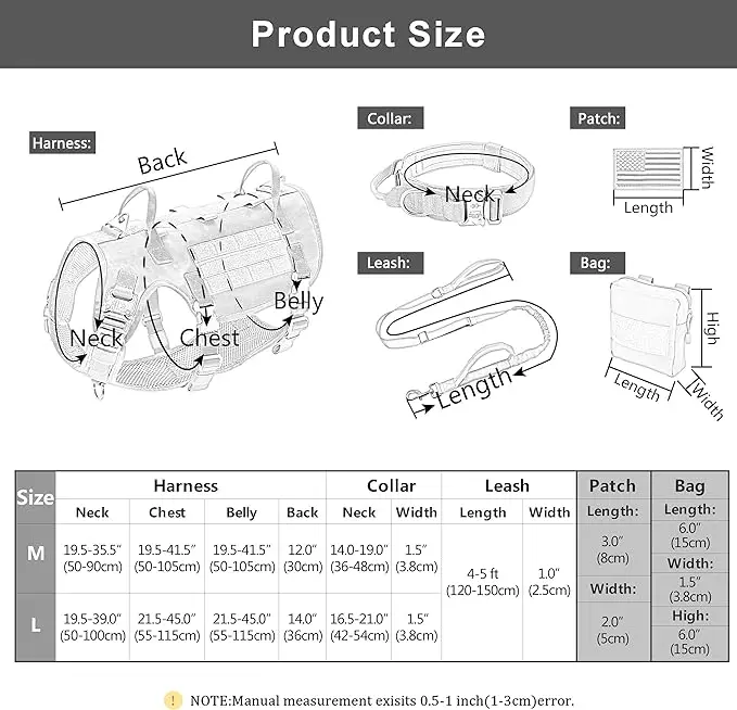 Conjunto de correa y arnés militar táctico para perros, arnés de entrenamiento duradero para perros grandes, chaleco MOLLE para perros grandes con bolsas, bandera