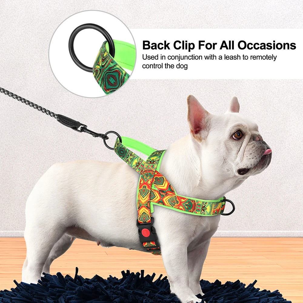 Arnés para perros sin tirar Arneses para perros de nailon fresco Chaleco de entrenamiento para mascotas con mango de control ajustable para perros pequeños y grandes Pitbull Pug