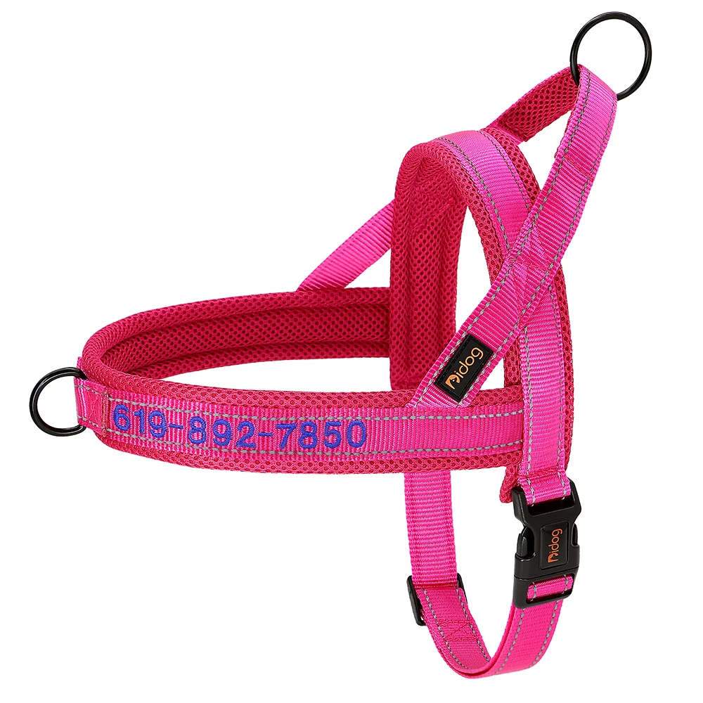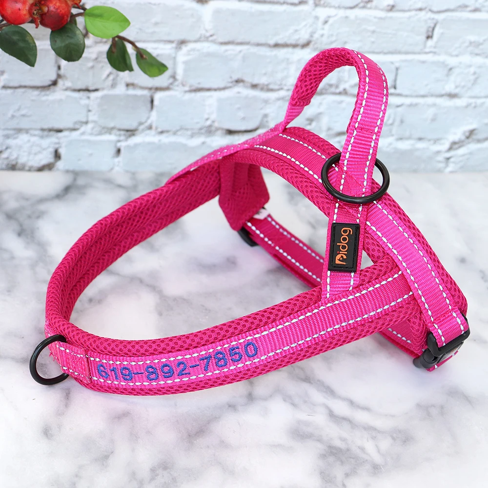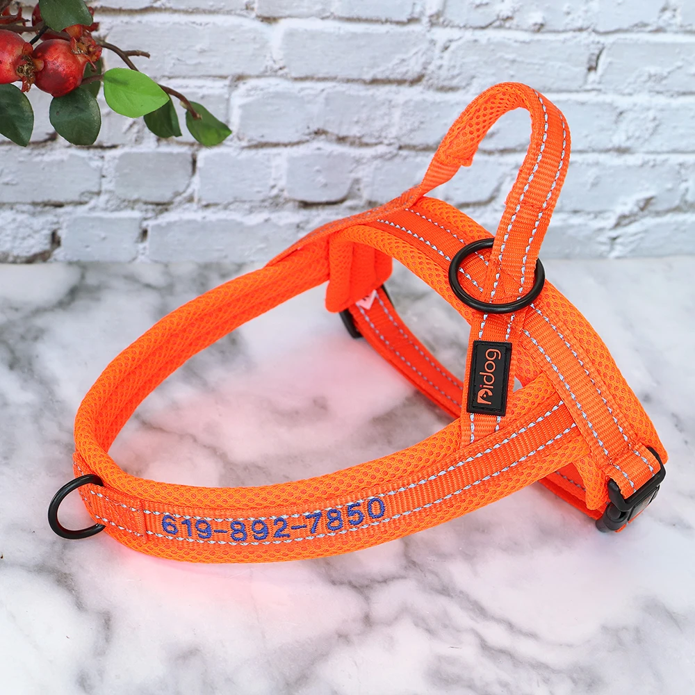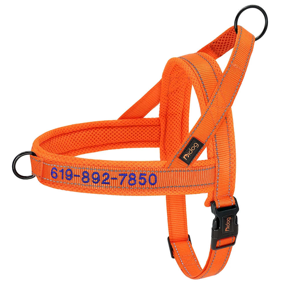Personalized Nylon Dog Harness Reflective No Pull Dogs Harness Vest Embroidered Name for Small Medium Large Dogs French BulldogColor: Black, Blue, Orange, Pink