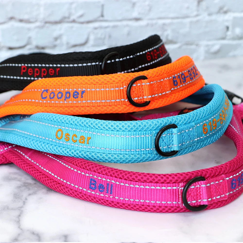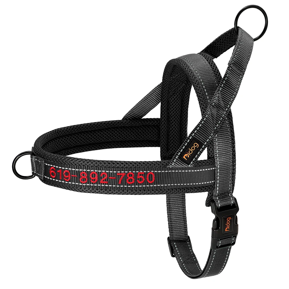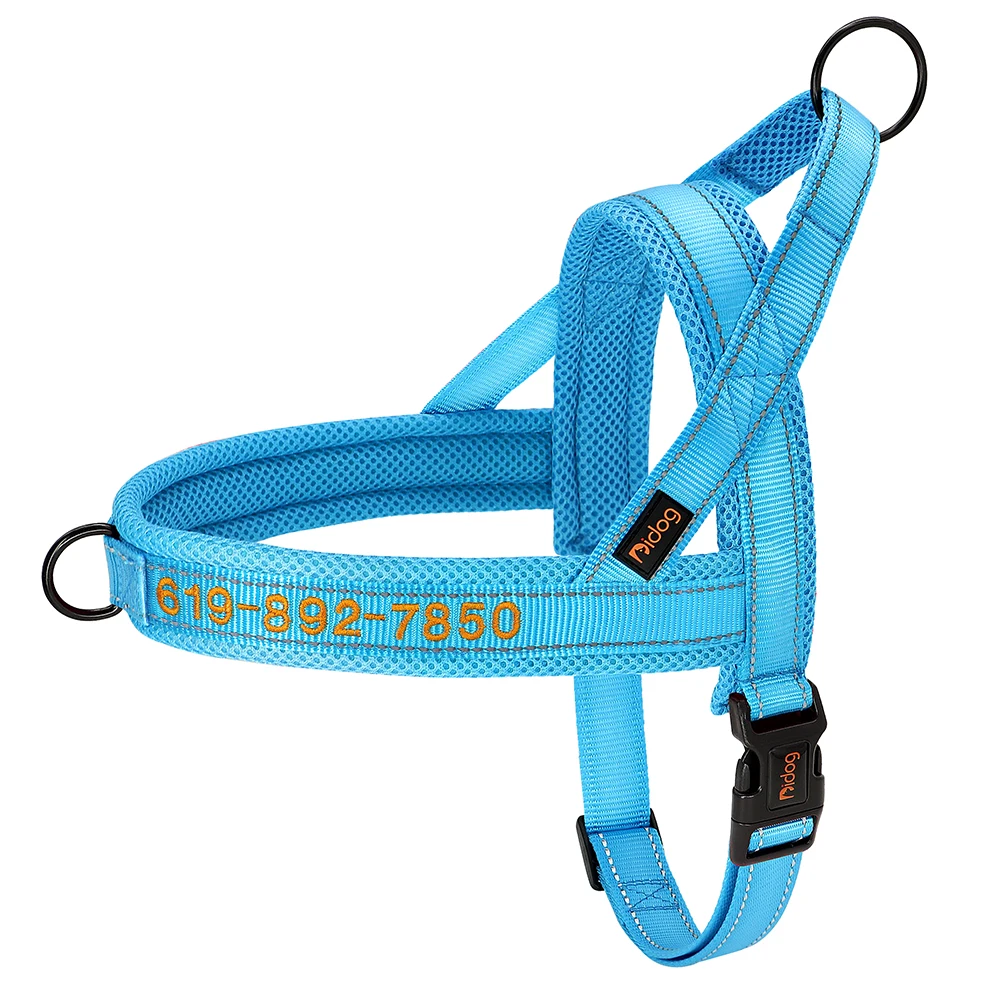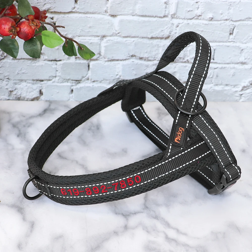 Personalized Nylon Dog Harness Reflective No Pull Dogs Harness Vest Embroidered Name for Small Medium Large Dogs French BulldogColor: Black, Blue, Orange, Pink