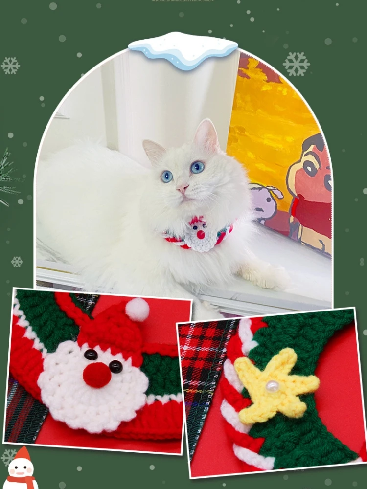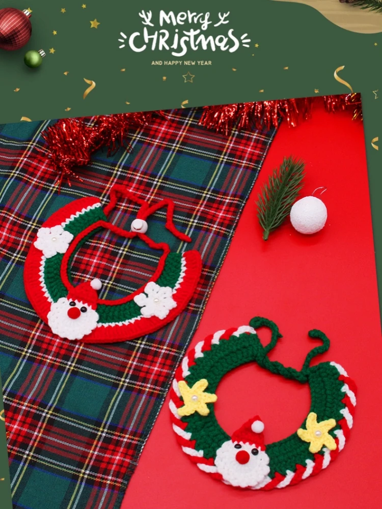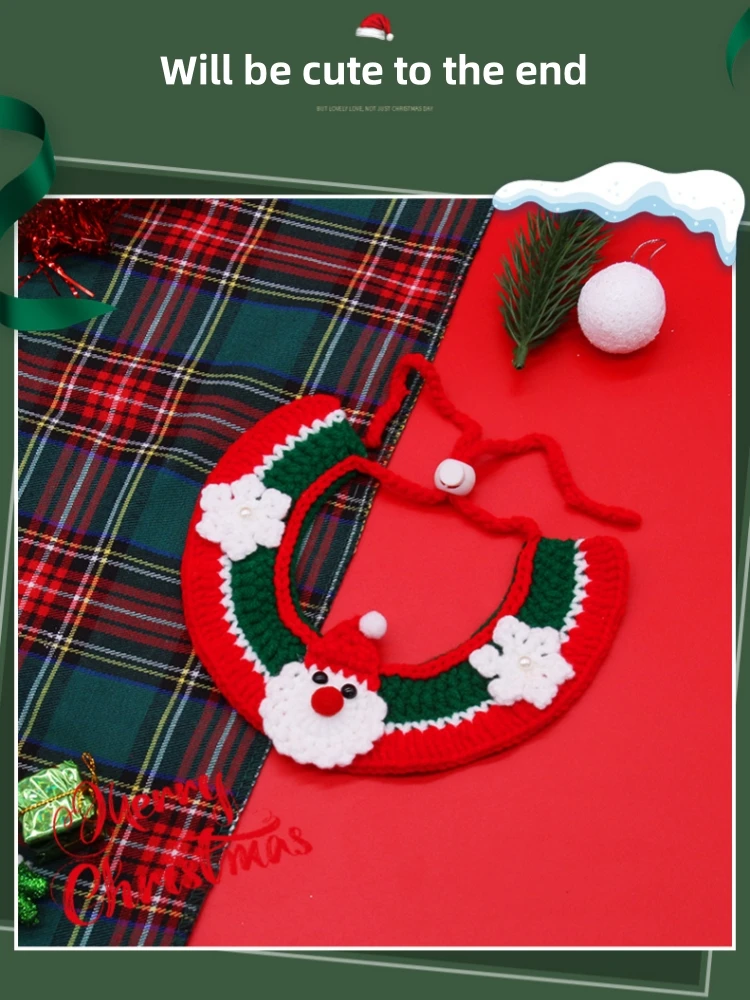 Arnés de Navidad para mascotas, bufanda con lazo para gato, Collar de punto para Año Nuevo, Baberos para perros, accesorios para disfraces de Navidad para mascotas pequeñas y medianas, suministros para mascotas