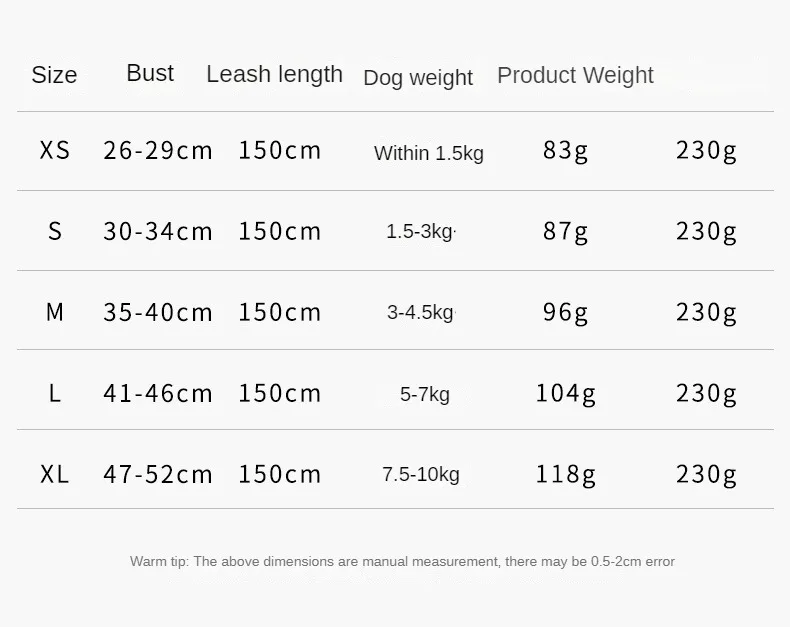 Tomé la talla S para un gato de 3.5 kg, aunque según la tabla de tallas era M, hubiera sido demasiado grande. El ajuste es bueno, nada aprieta, el gato está cómodo y todavía hay espacio de sobra. Me gustó la calidad. Llegó rápido, enviado por expreso. Lo recomiendo antes de la compra.