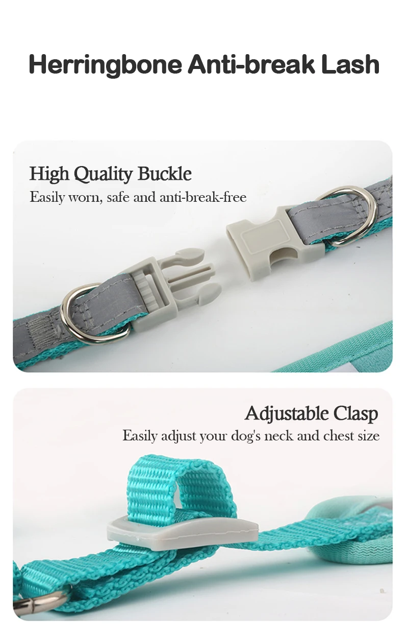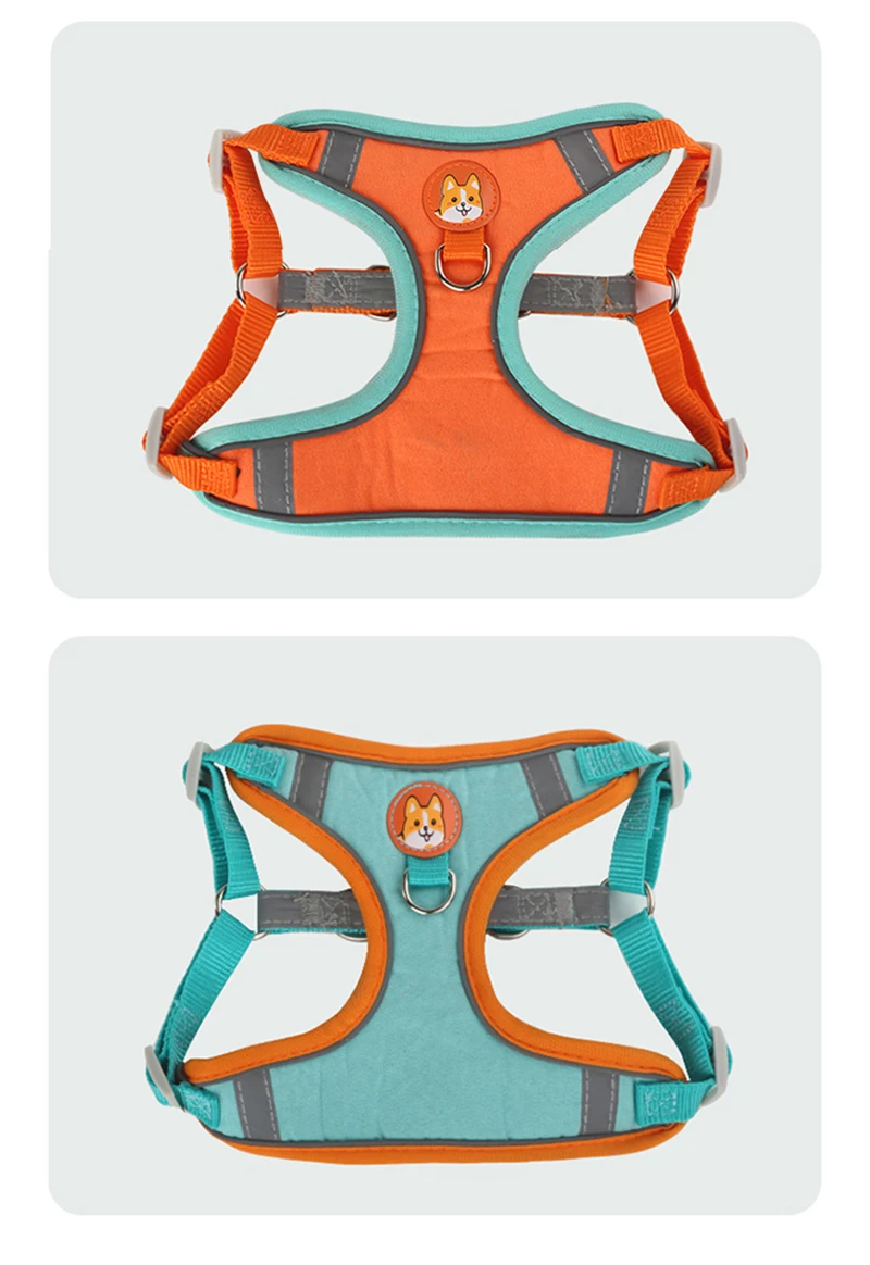 Fuerte y duradera, esta correa de pecho para perros se puede usar todos los días para salir, hacer ejercicio, correr, viajar y caminar, disponible en cuatro colores.