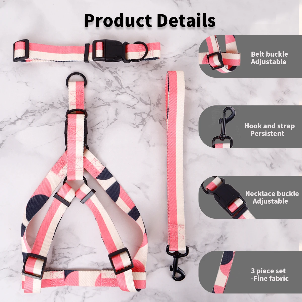 Cómodo y sin restricciones: el collar y el arnés para perros adoptan un sistema de ajuste de tres puntos, que puede ajustar la longitud para que el arnés y el collar se ajusten mejor al cuerpo del perro, elimine la tensión y la presión sobre el cuello de la mascota y haga que su perro se sienta más cómodo al caminar o entrenar. Adecuado para todas las estaciones, ya sea sacando a pasear a su mascota, viajando o manteniendo a su mascota en un estado de ánimo positivo.