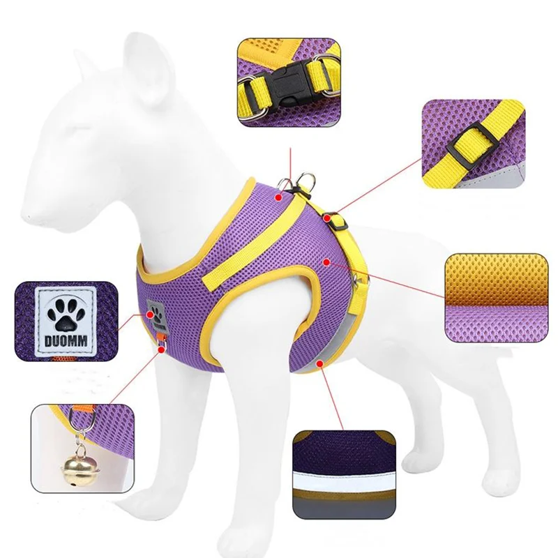 Arnés de pecho para perro, malla reflectante, suave, acolchada, sin tirones, transpirable, conjunto de Correa y arnés para mascotas