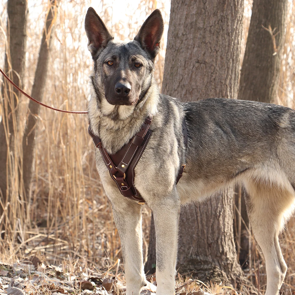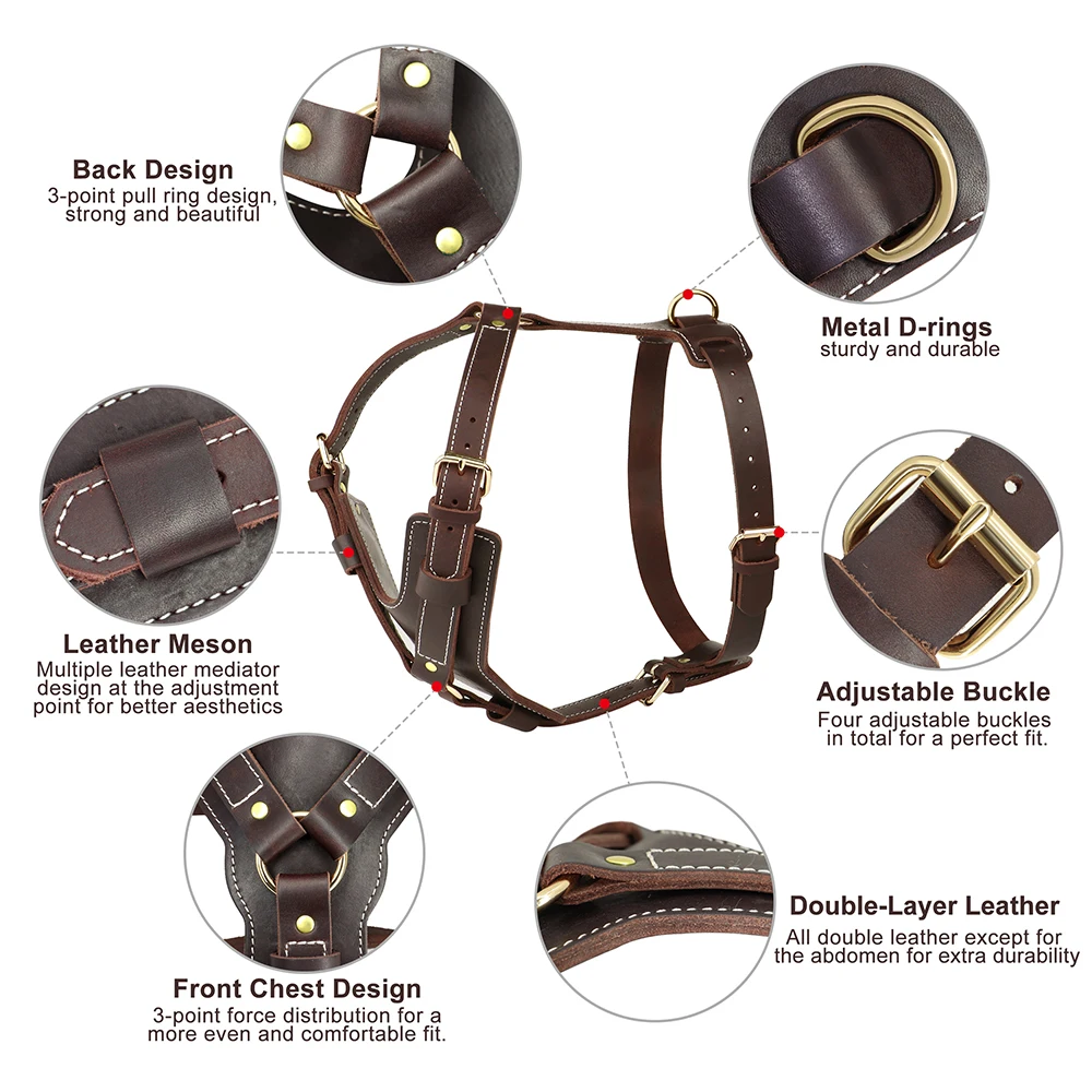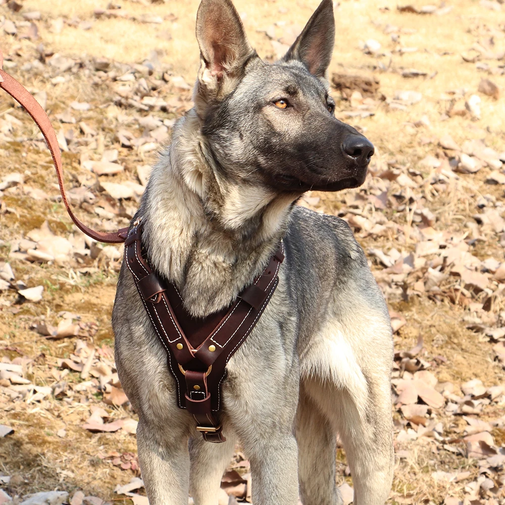 Arnés duradero para perros grandes, Chaleco de cuero genuino para perros, arneses ajustables de Control rápido con mango, suministros para mascotas para Labrador