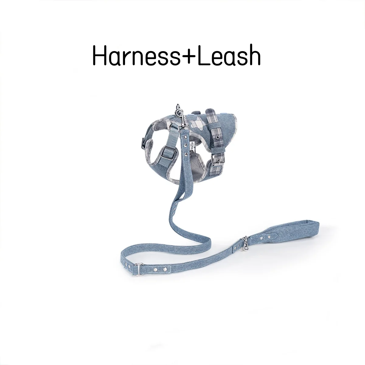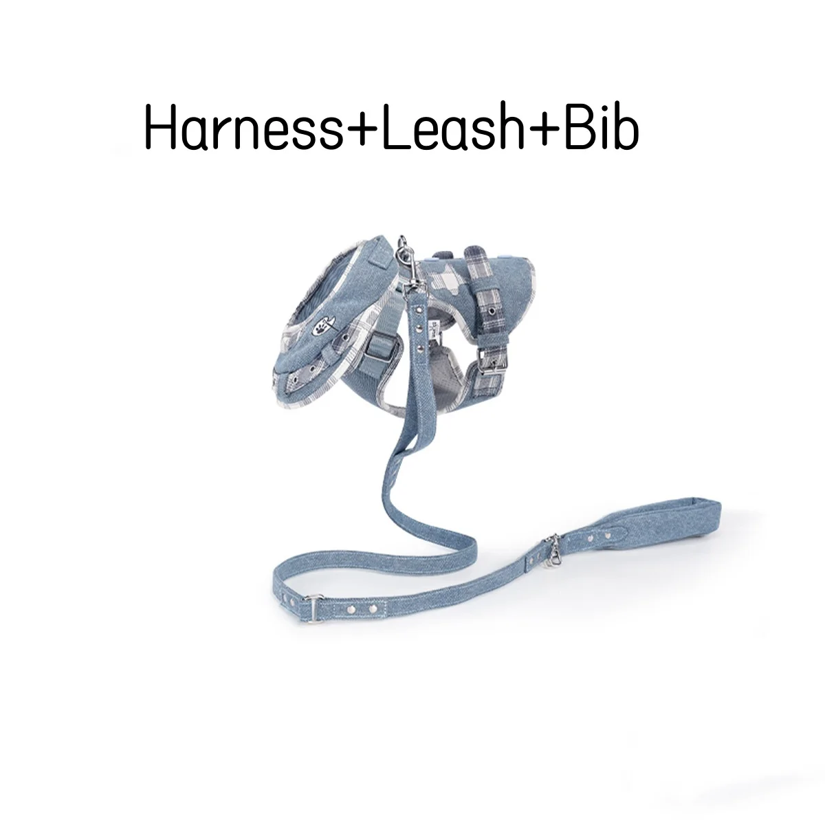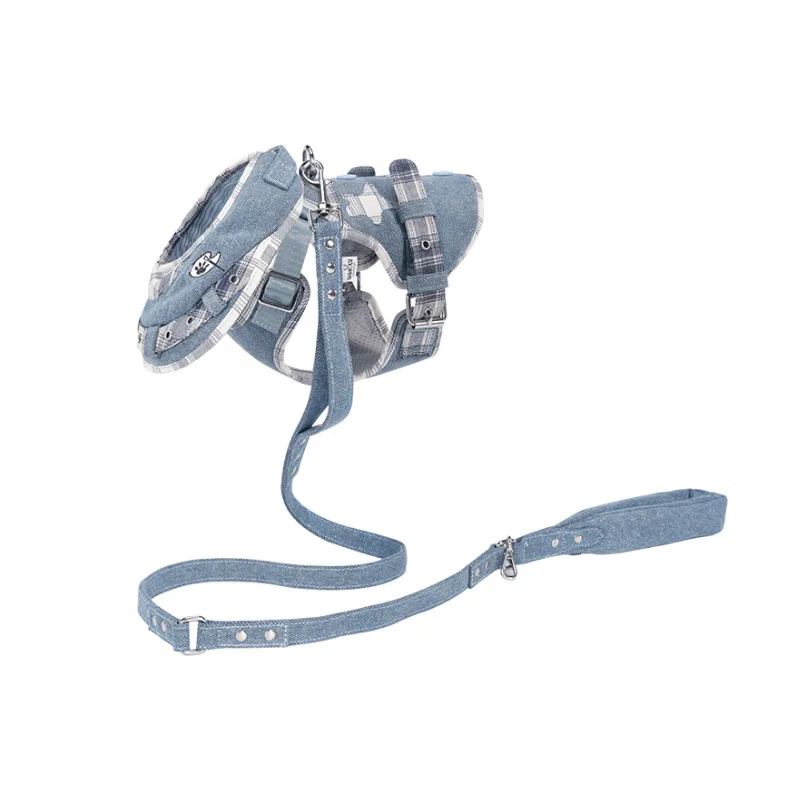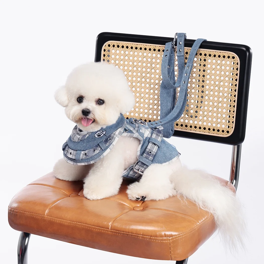 Arnés de perro de lujo Jean No Pull, conjunto de babero, chaleco, arnés para perro, correa con mango acolchado para perros pequeños, correa para caminar al aire libre para mascotas
