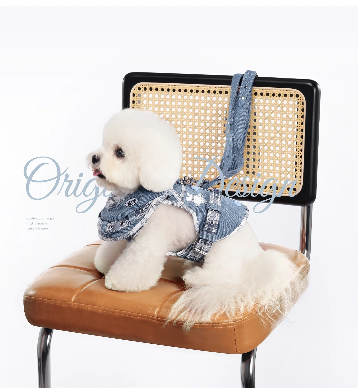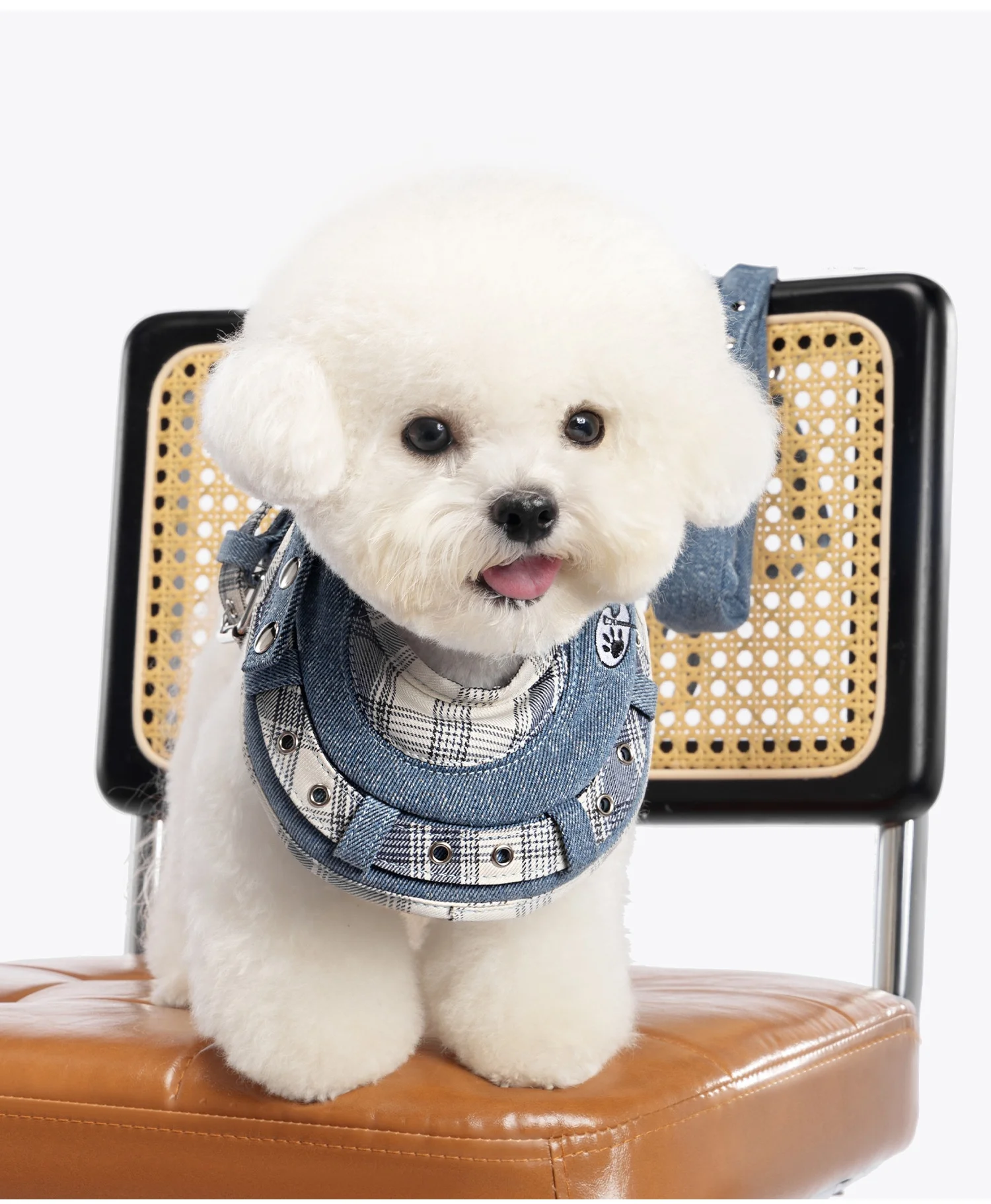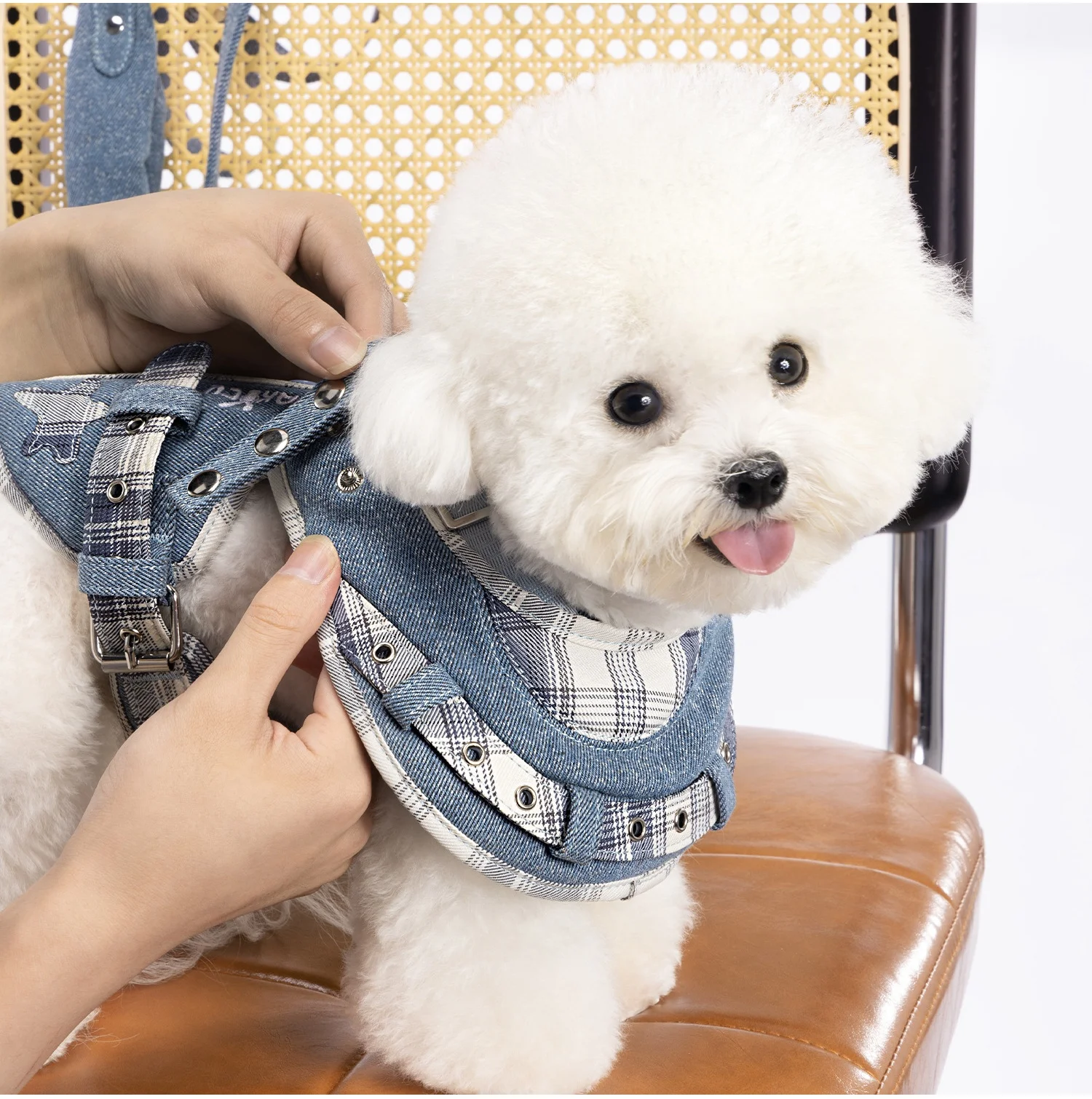 Arnés de perro de lujo Jean No Pull, conjunto de babero, chaleco, arnés para perro, correa con mango acolchado para perros pequeños, correa para caminar al aire libre para mascotas