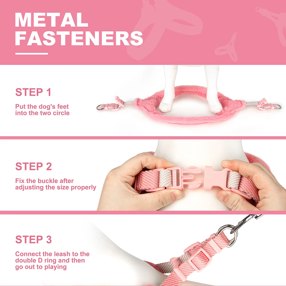 Arnés cálido acolchado para perros, arnés de invierno para perros, chaleco ajustable, chalecos para mascotas, suaves para perros pequeños, medianos y grandes, Bulldog Pug, color rosa