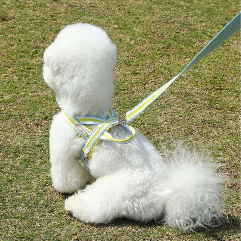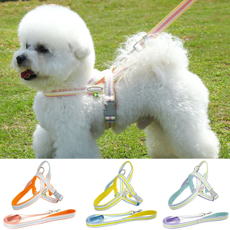 Arnés para perros para caminar al aire libre para perros pequeños y medianos, arneses para mascotas estilo sillín, juego de correa, accesorios para cachorros Bichon mascotas