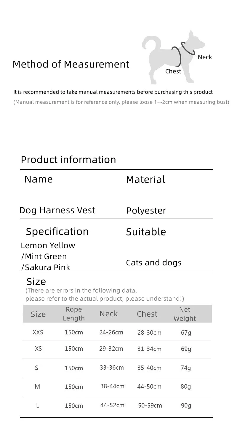 Circunferencia del cuello: 26-28 cm/circunferencia del pecho: 28-30 cm/adecuada para perros de 1,5 kg