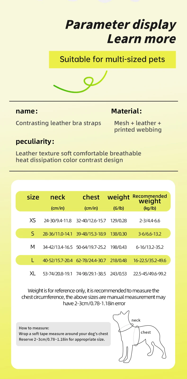 ¡Este es un arnés de altísima calidad! Realmente genial, pero resultó ser demasiado grande para mi chihuahua de 1.5 kg (((Muy grande( Inicié una devolución y me sorprendió que me reembolsaran sin devolver el arnés) Sorprendido porque el arnés es caro) ¡Pero es bueno que haya un servicio al cliente así aquí! Conclusión: ¡¡¡el producto es de excelente calidad!!! En cuanto a las tallas, solo necesitas mirar las medidas y no cometer errores como yo. 😁