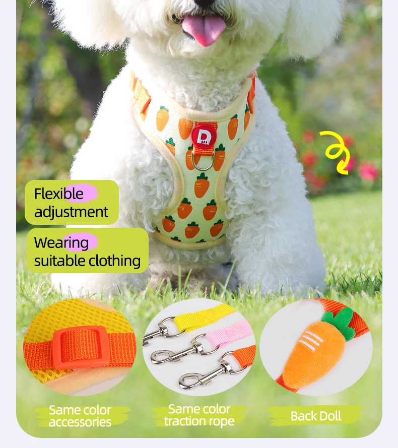 Arnés para perros estilo chaleco para perros pequeños, arnés transpirable sin tirones para mascotas con correa, cómodo y ajustable para cachorros Bichon