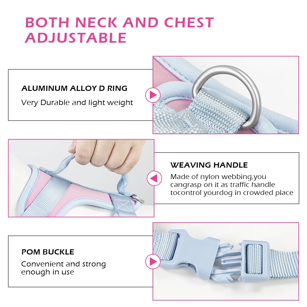 Arnés para perros pequeños, medianos y grandes, ligero, transpirable, sin tirones, arnés para chaleco para perros, correa ajustable para el pecho personalizada