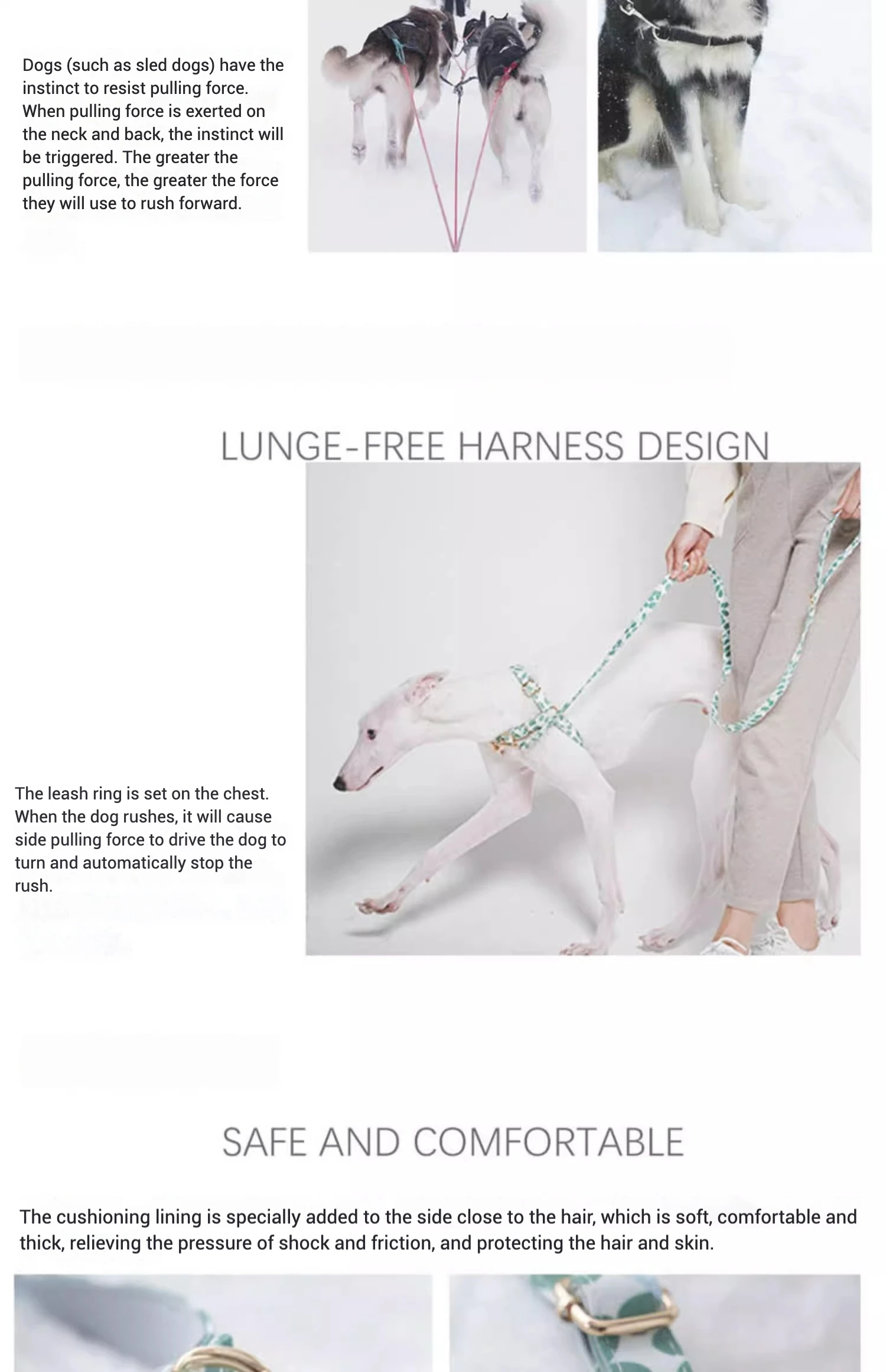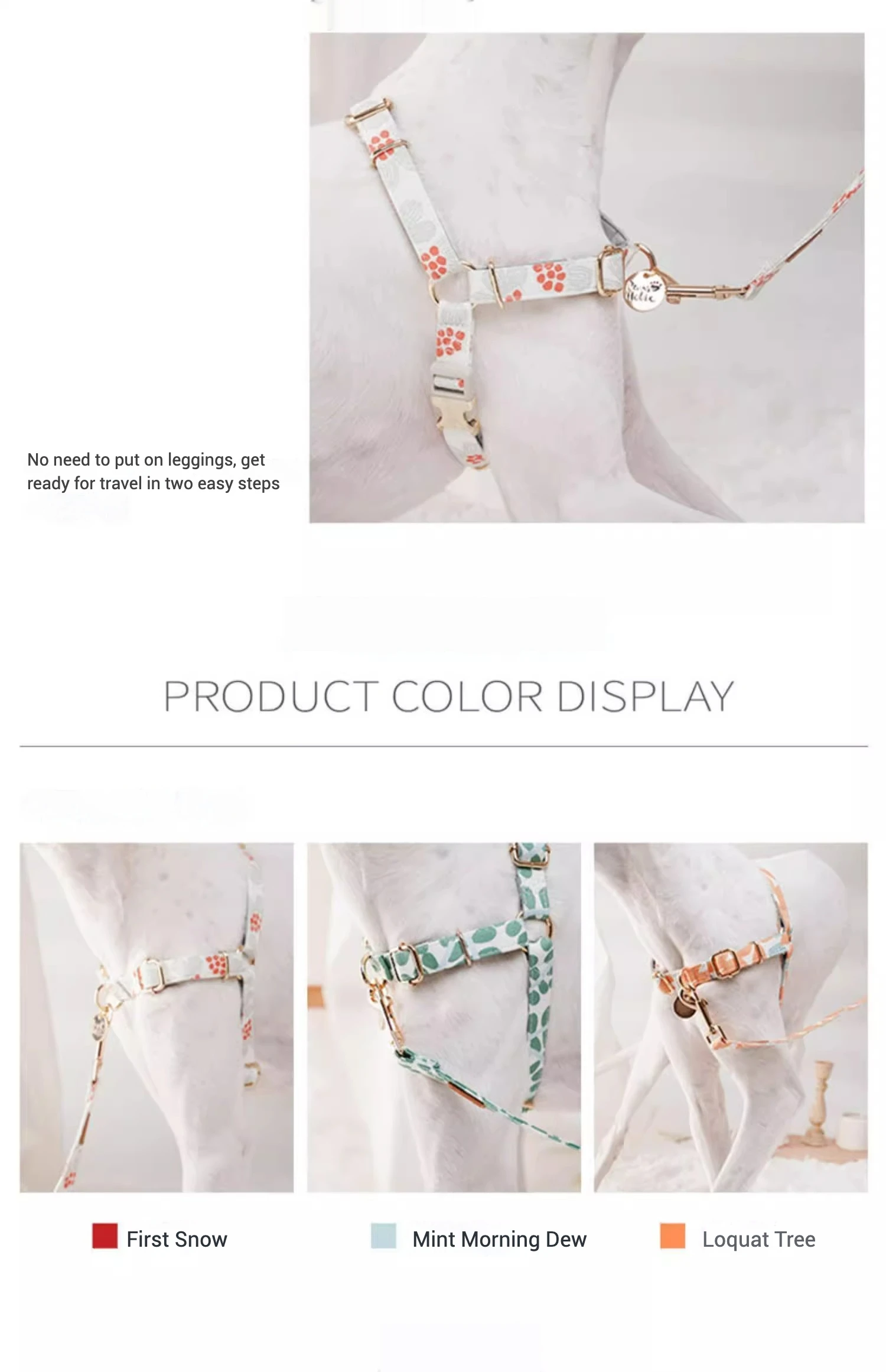 🌟 2. Diseño fácil de usar: El diseño de uso rápido hace que ponerse el arnés sea sin complicaciones, ahorrándole tiempo y esfuerzo durante los paseos.